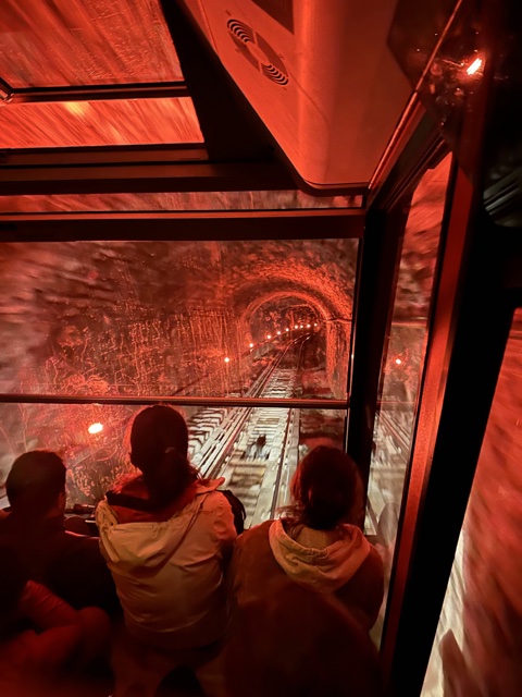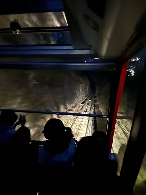 Here's a 25-second video of part of the ride down, including the cars passing each other. It is fun to hear the lively chatter in German, as everyone in the car was excited from the views they just had.