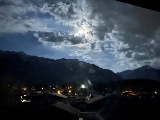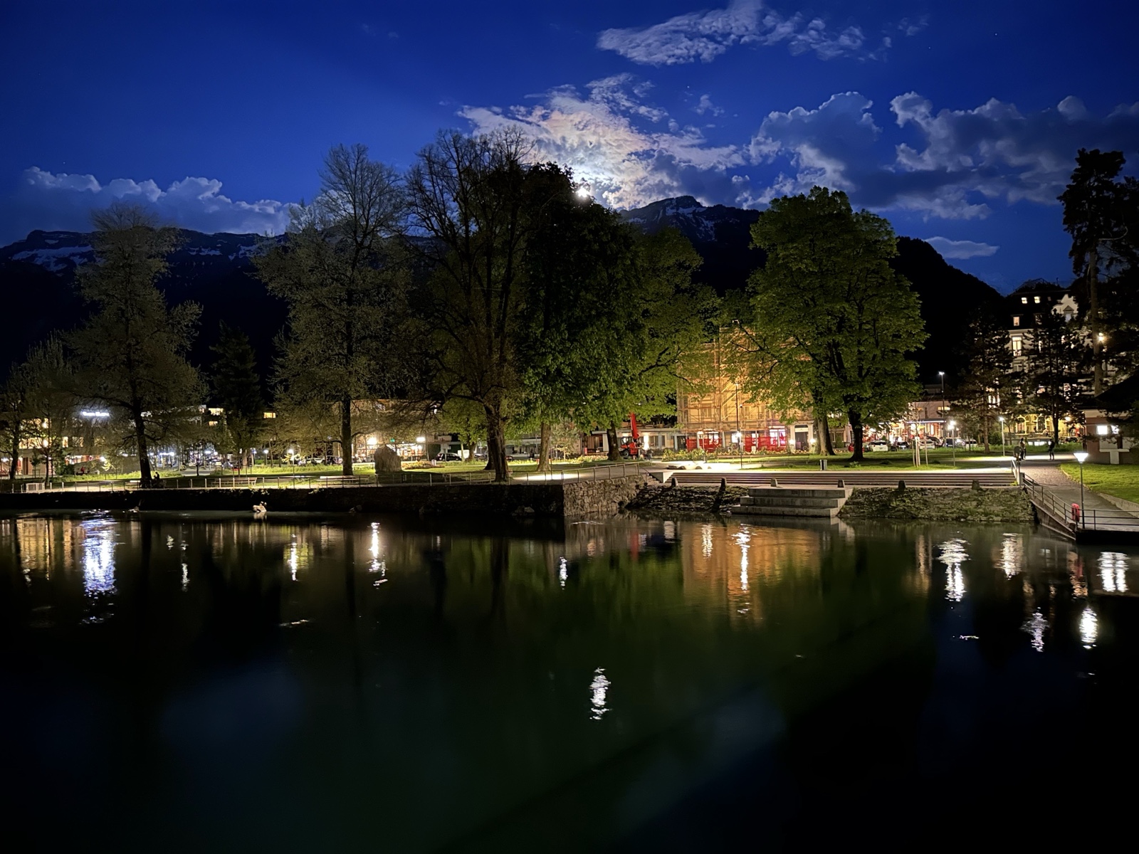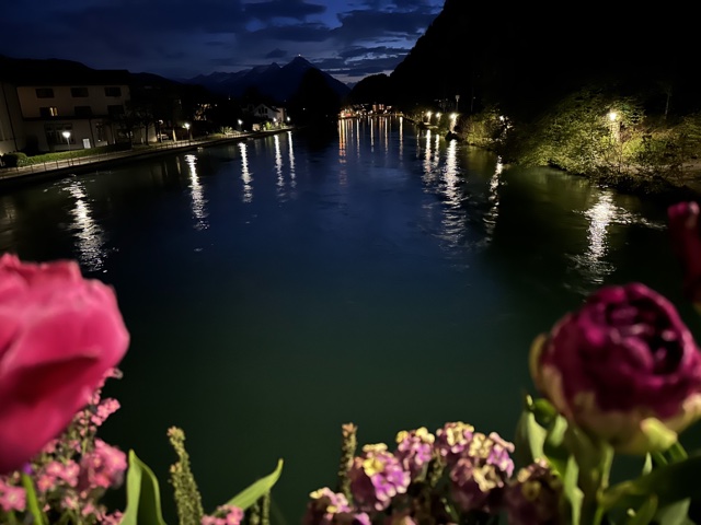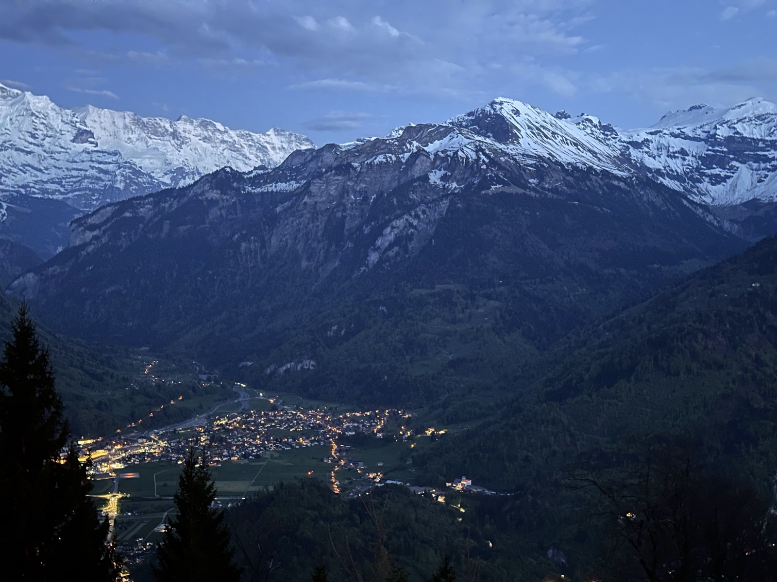 I got this picture out the station window with "night mode". You can see Interlaken starting to light up at night.