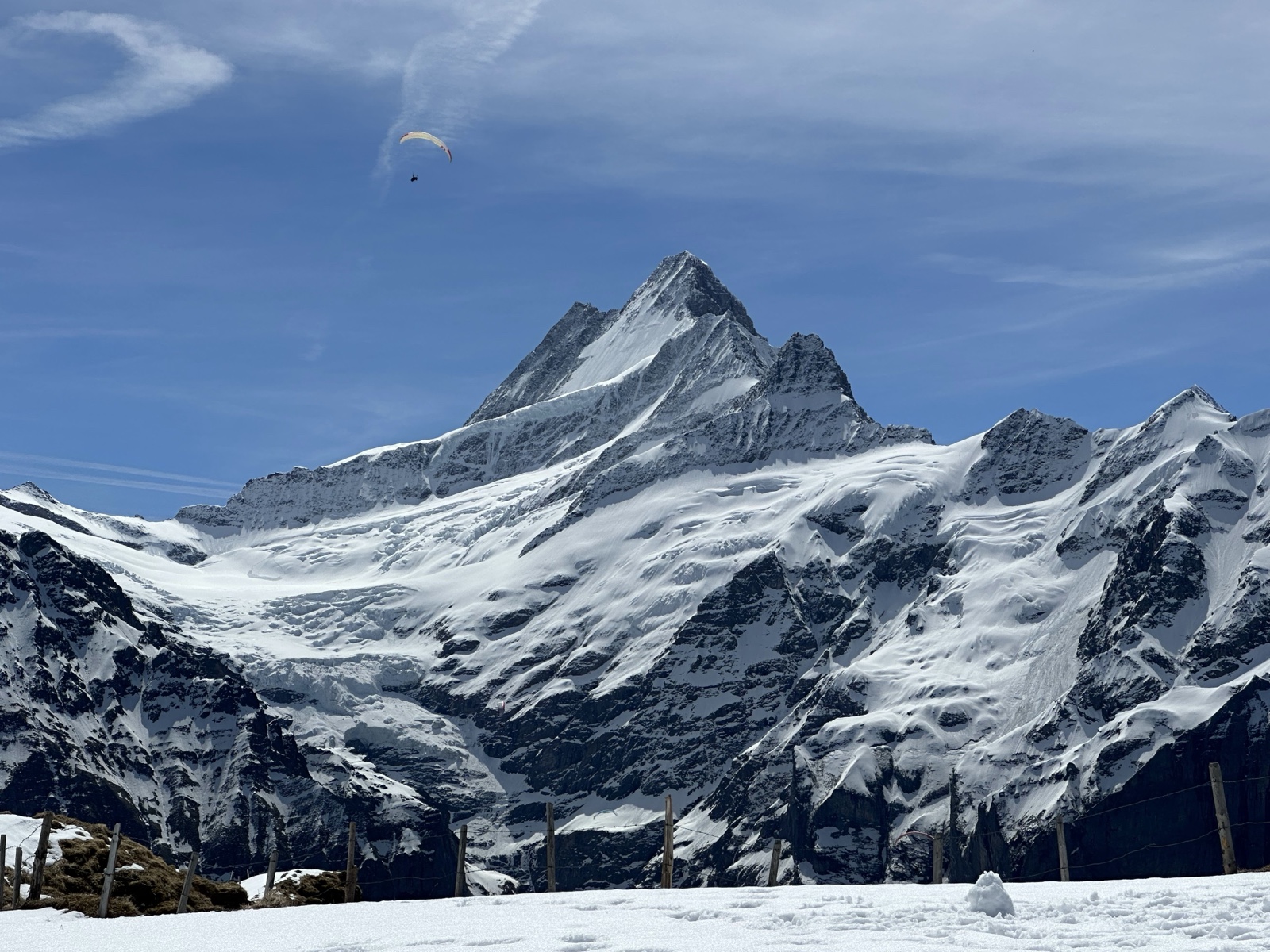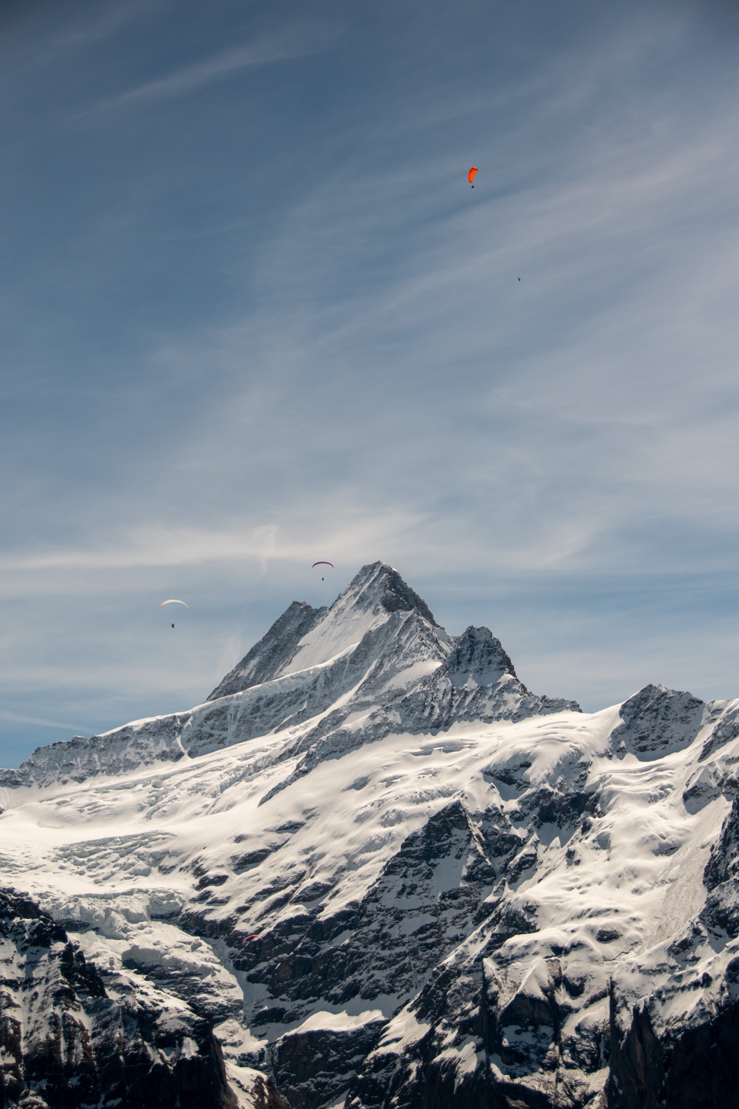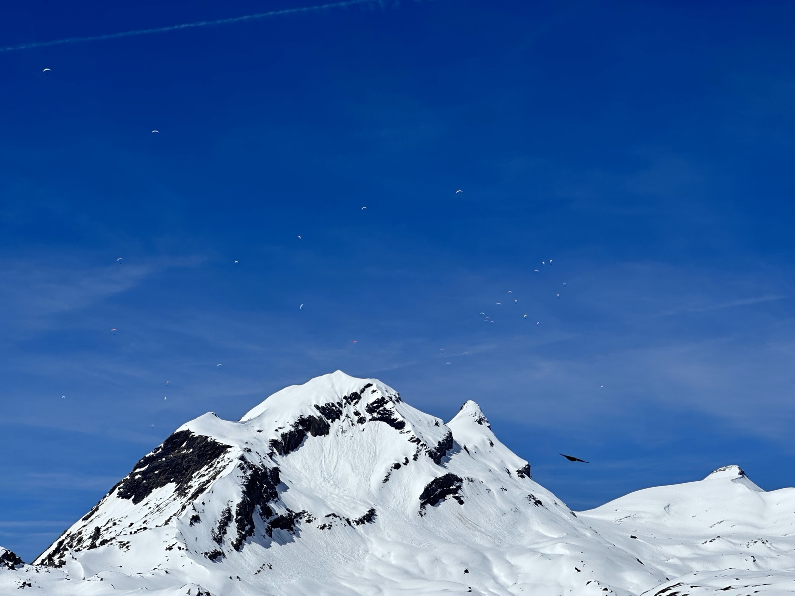 We saw some paragliders taking off from the snowy hill, and then soar into the sky from the updrafts.