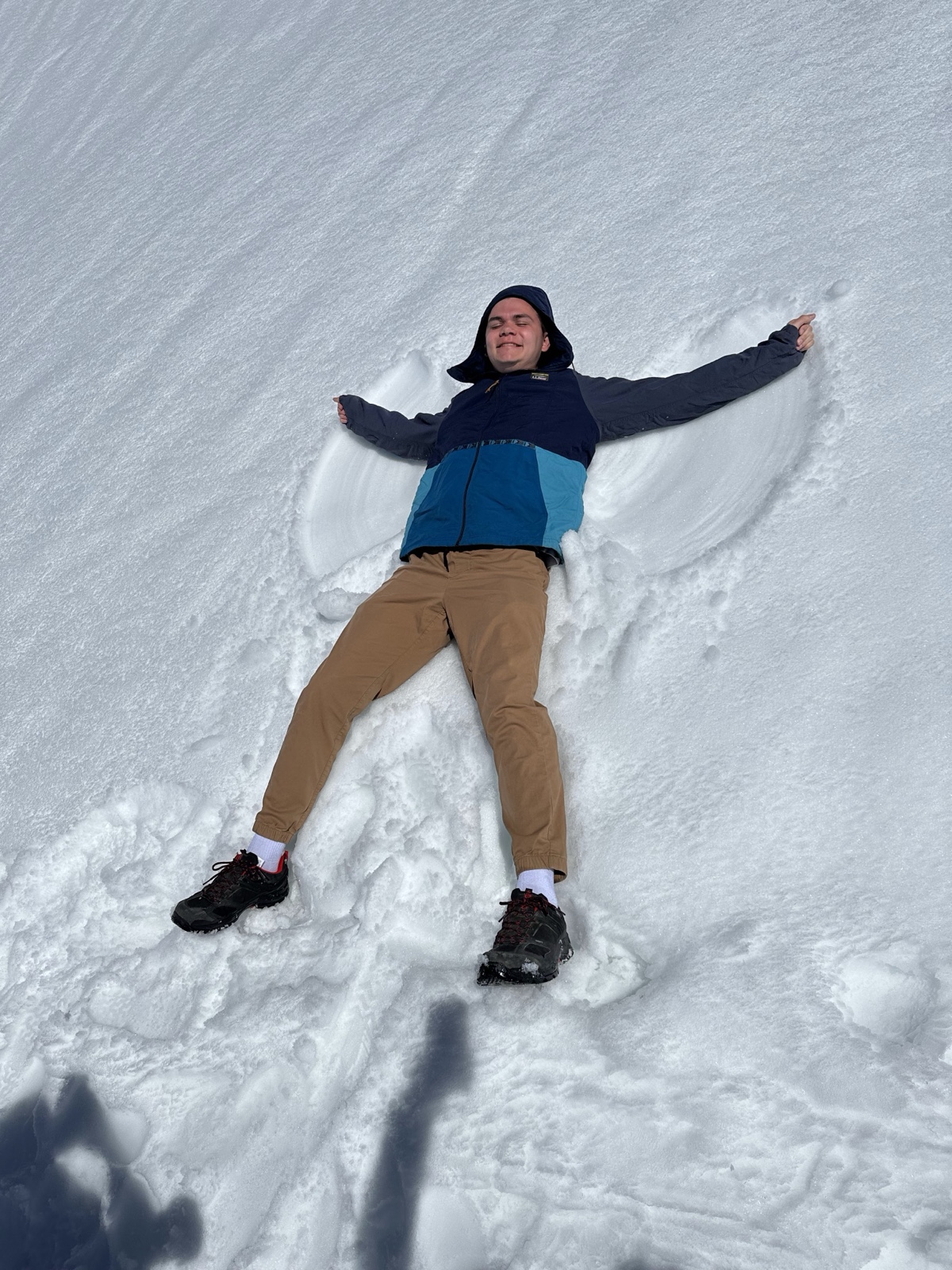 Jared had to try really hard to keep his eyes open for this picture, because of how bright the sun and snow were.