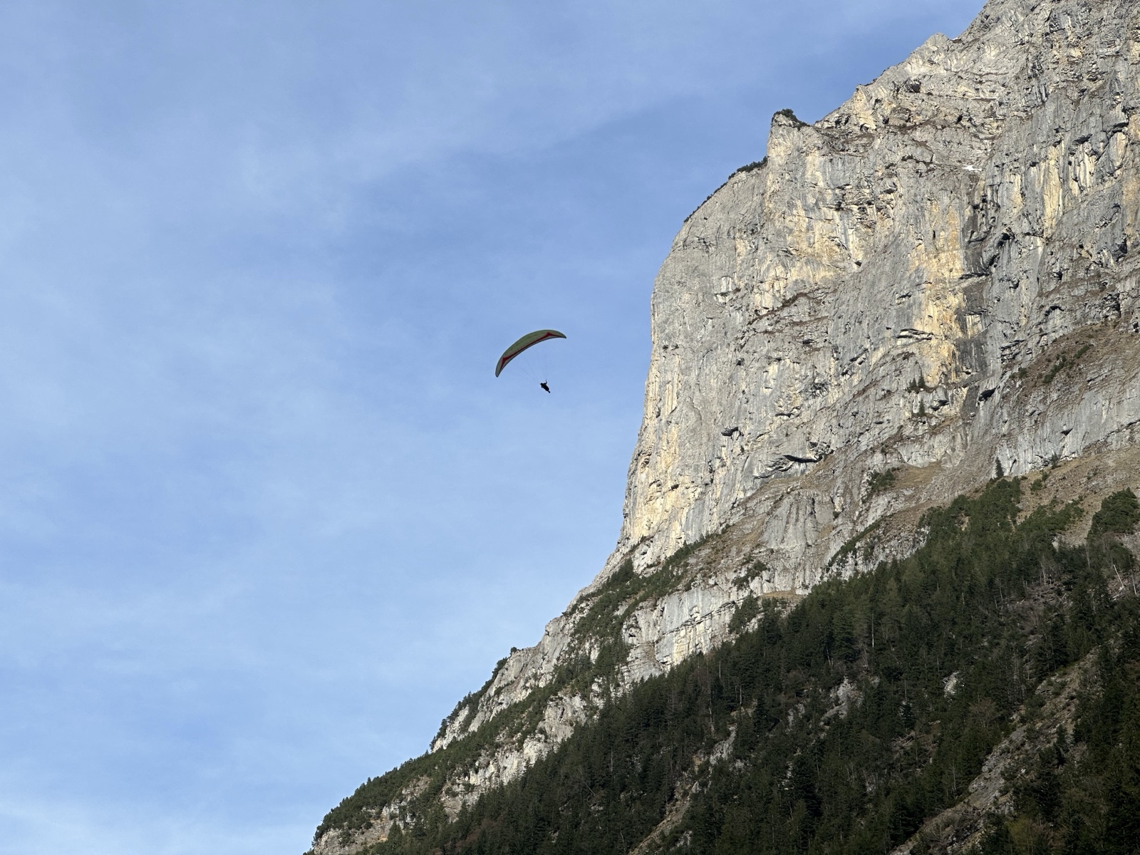 The tallest cliffs in the Lauterbrunnen valley are 1000m (3,300 feet) tall, making it an exciting place to paraglide.