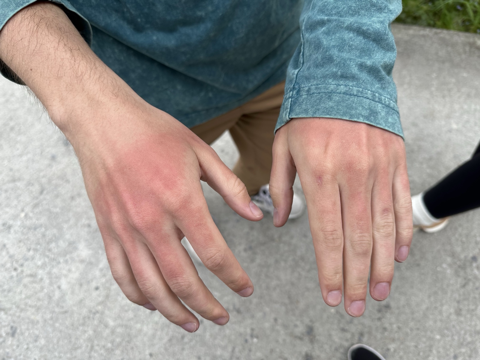 And there's a pretty distinct line where his long sleeved prevented sunburn as well.