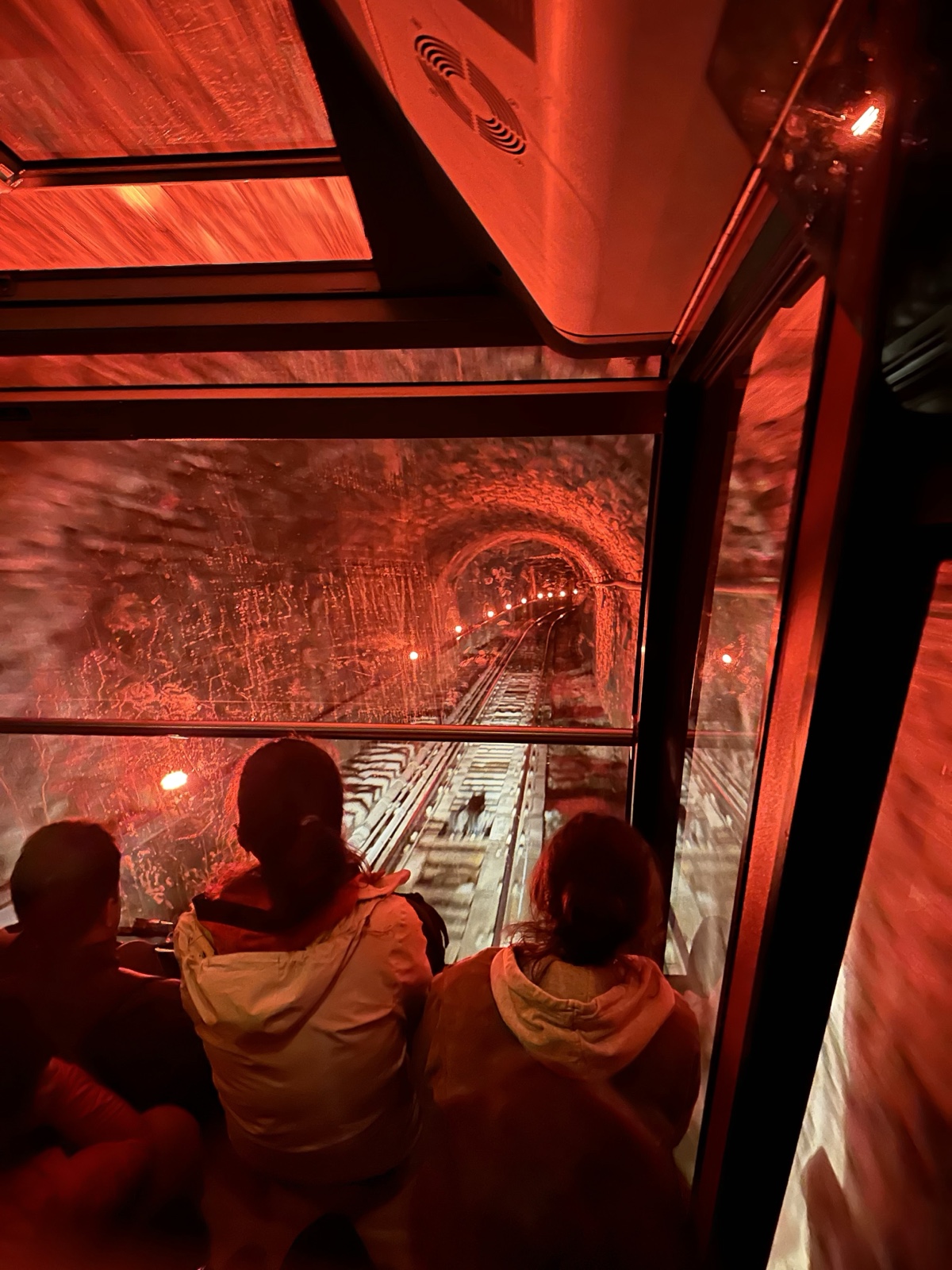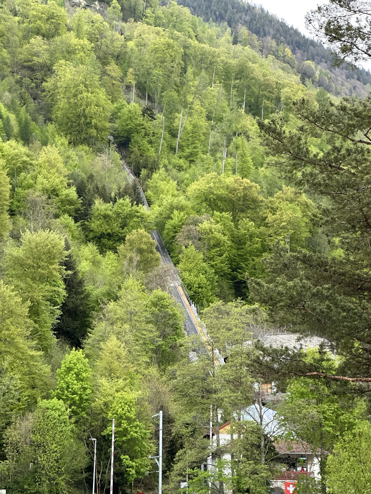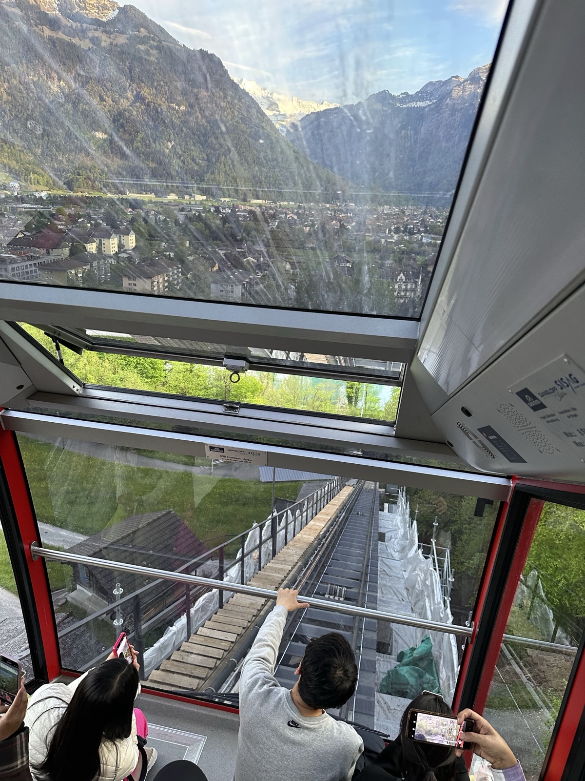 Another thing included with our Jungfrau Travel Pass was the funicular that went up a ridiculously steep hill to Harder Kuln. (A funicular is a train car that goes up a really steep hill via a cable).