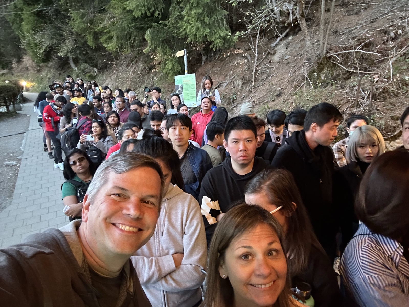 People lined up to have a turn for a picture at the tip of a little observation platform. (We decided the view was just fine everywhere else).
