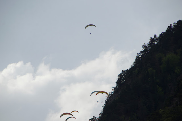 Linette, meanwhile, took a bus back to our AirBnB and picked up the car so that we could try to get up to a hike we wanted to do, immediately after the paragliding. Fortunately, she made it back and found a parking spot in time to see both flights.