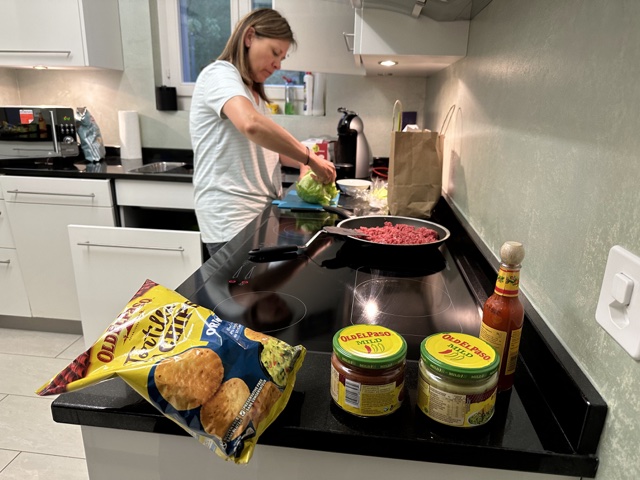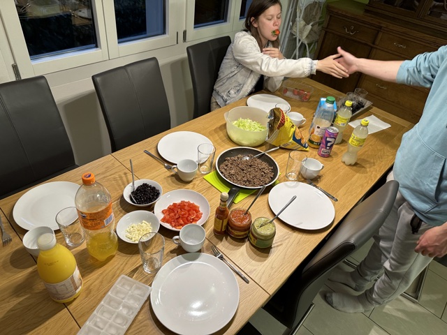 That day was Cinco de Mayo, so we whipped up some Mexican food, out of what we could find at a Swiss market.