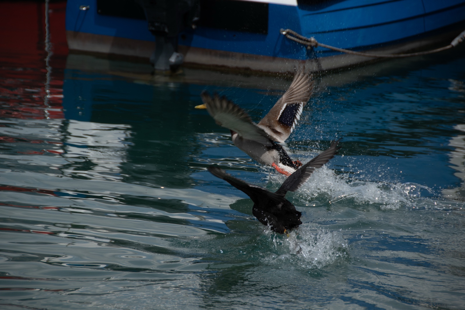 The kids fed some ducks little bits of the apple they were eating. Then a black bird with a sharper beak came along and drove the ducks away. Jared caught the action nicely.