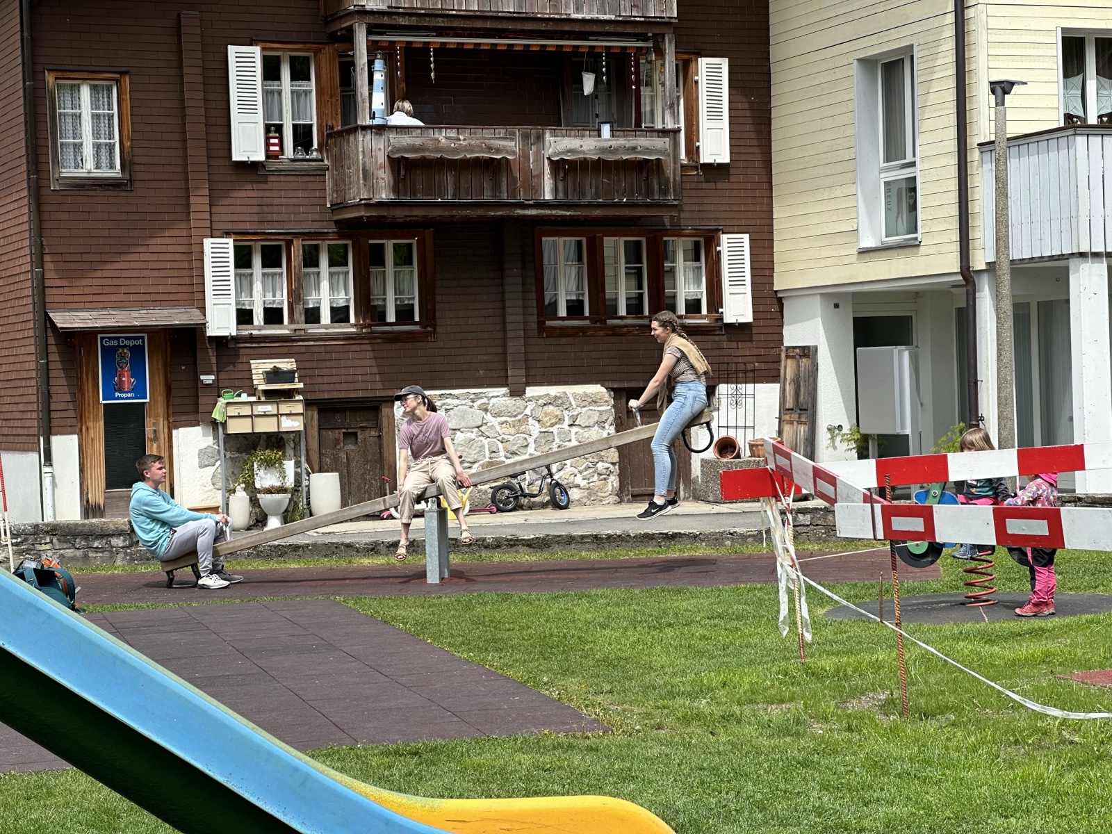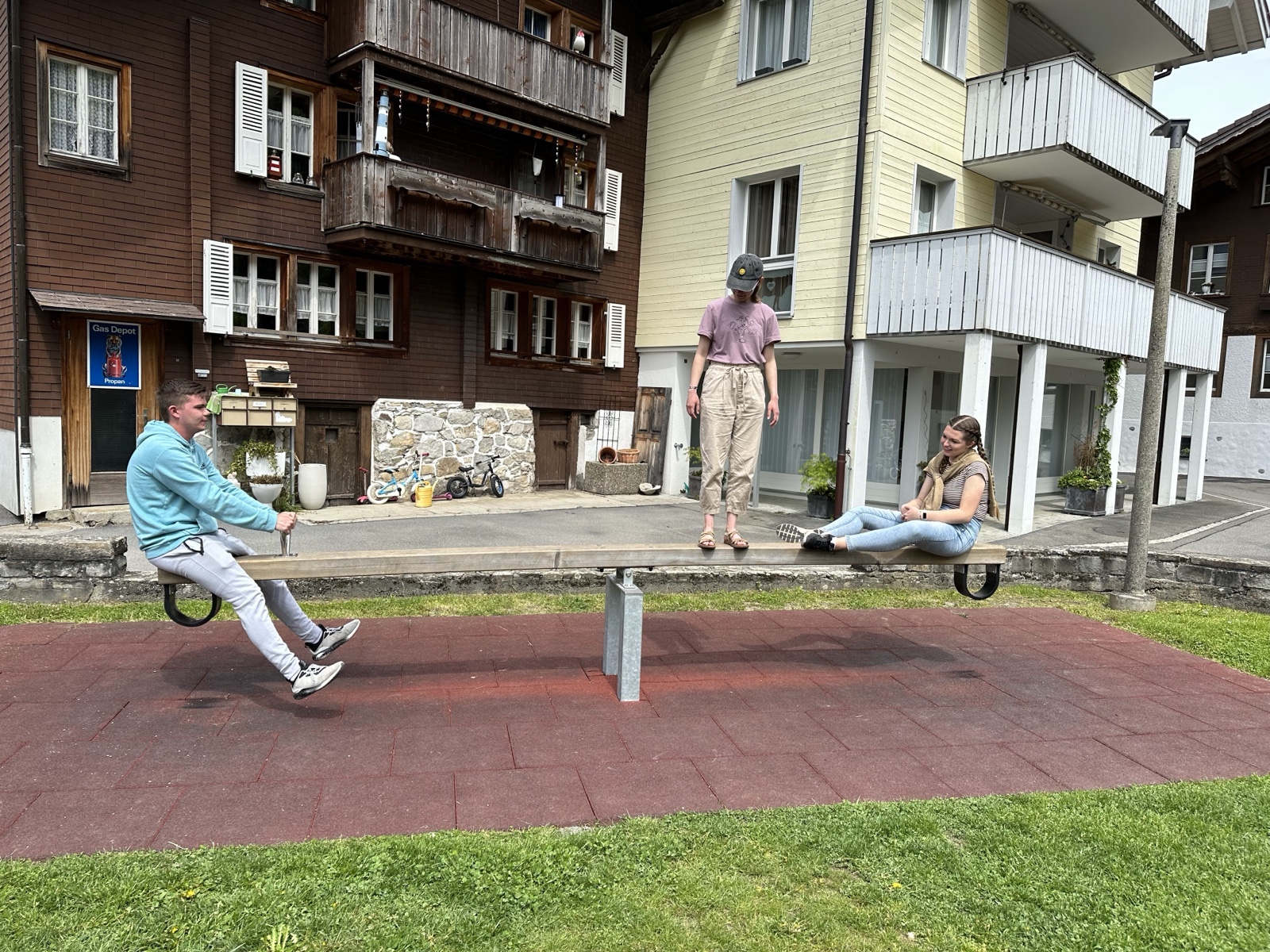The kids found a playground and did the teeter-totter.