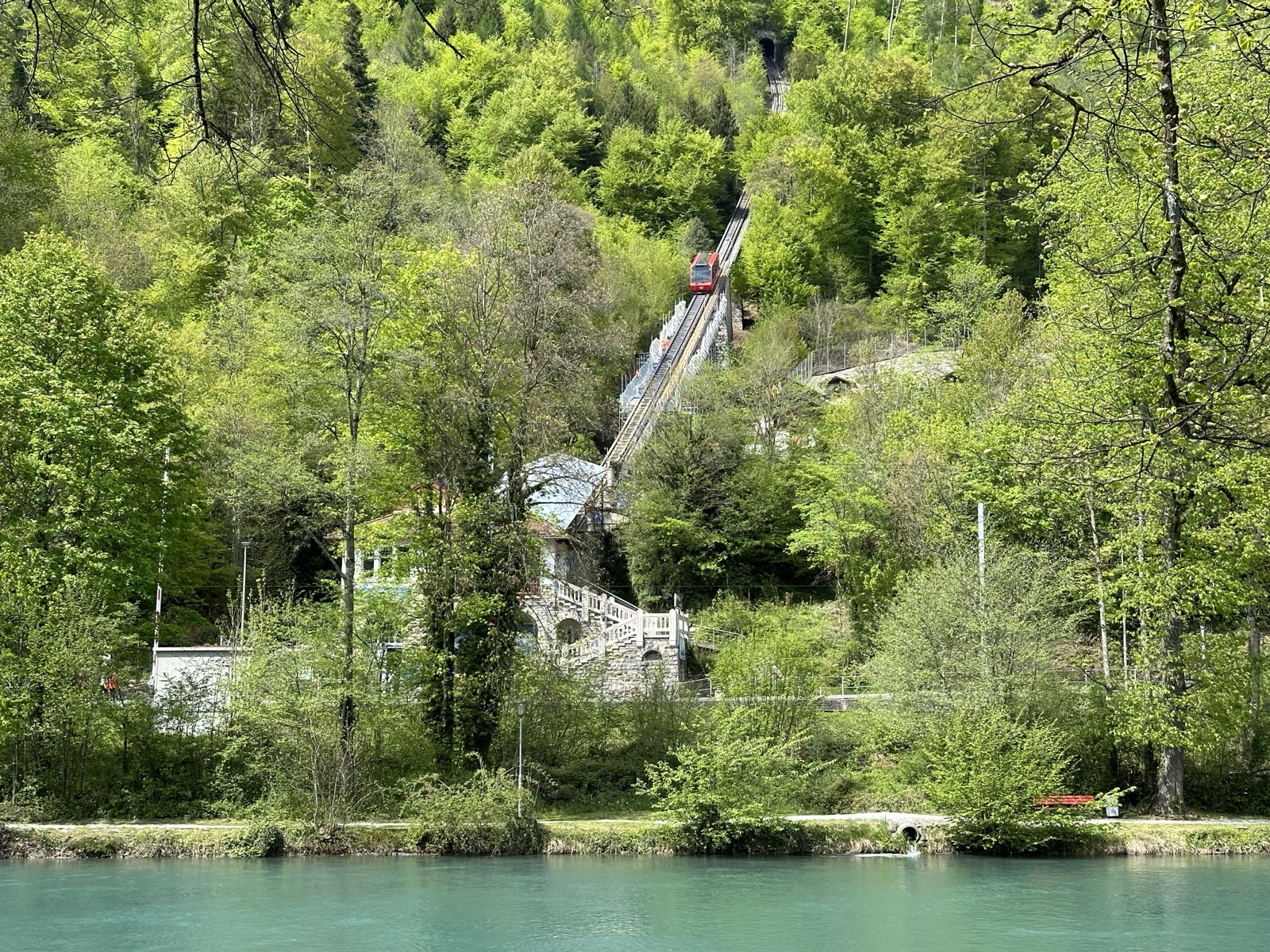 As we neared the boat dock, we passed by the funicular that we had taken up to Harder Kulm the night before.