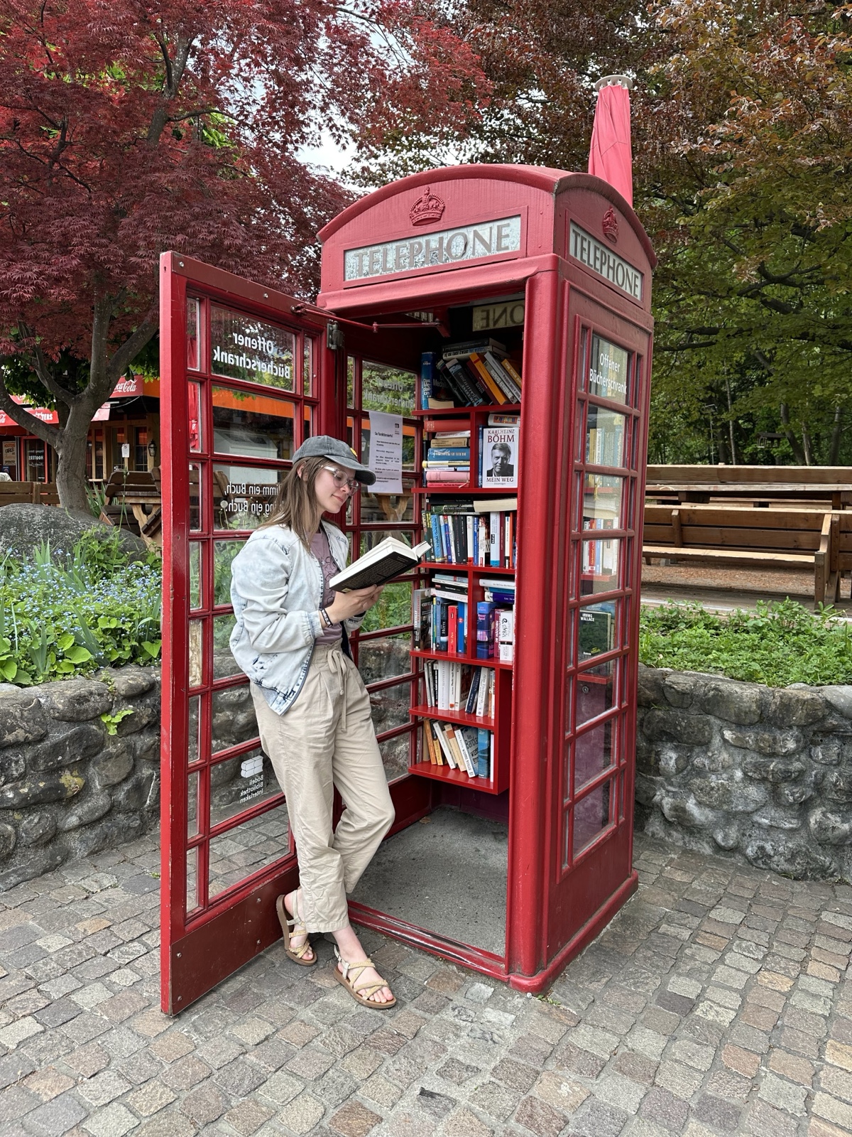 Sienna found a telephone booth full of books, so that was fun.