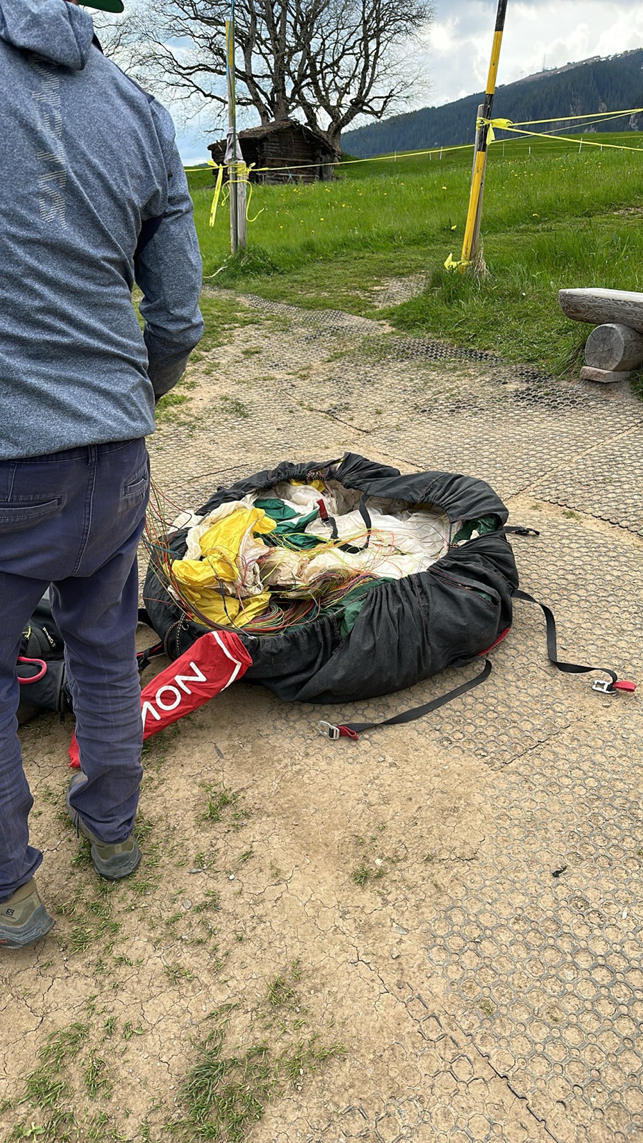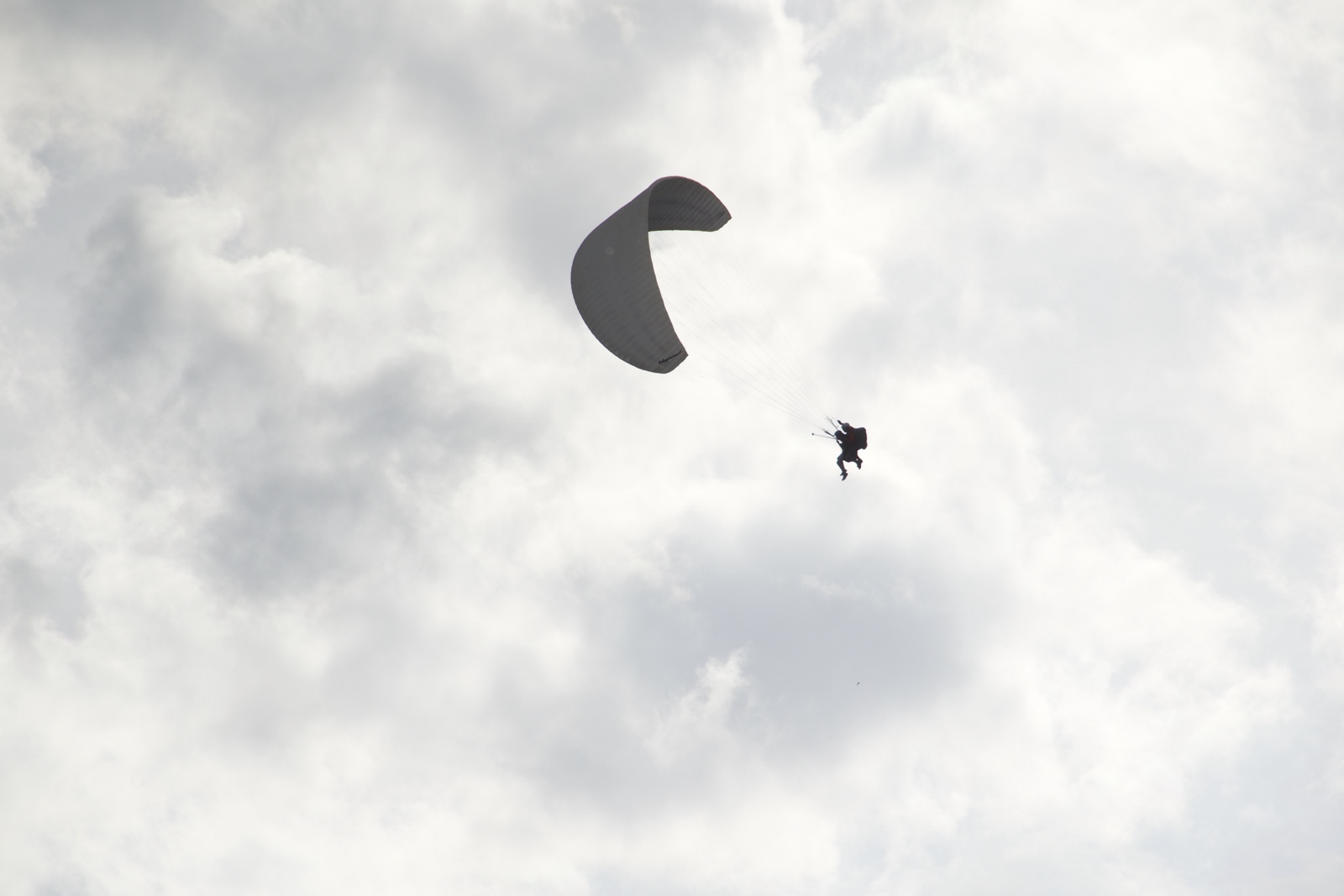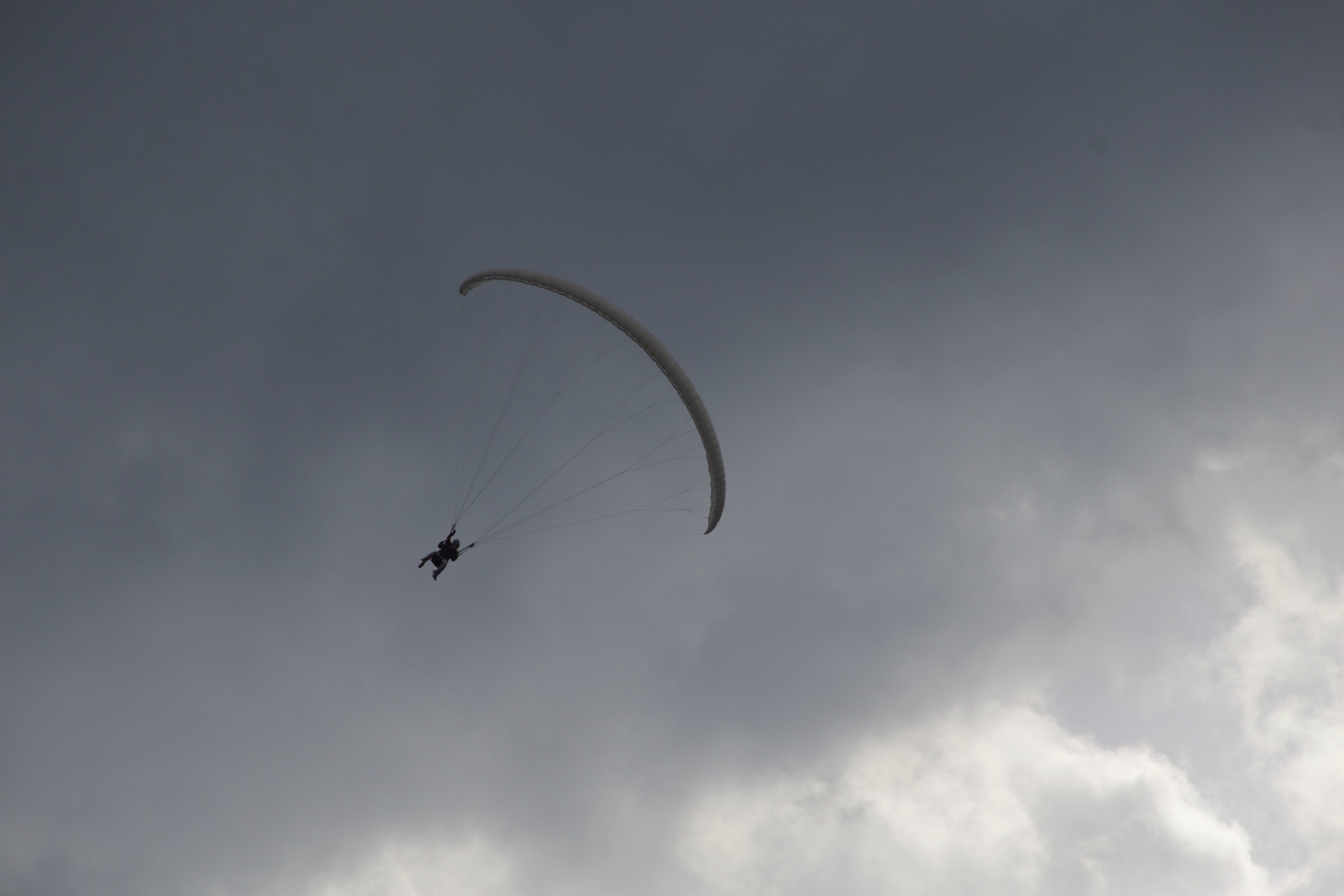 Here's Jared's white parachute in a flat pile, looking about like what he might look like if it failed...
