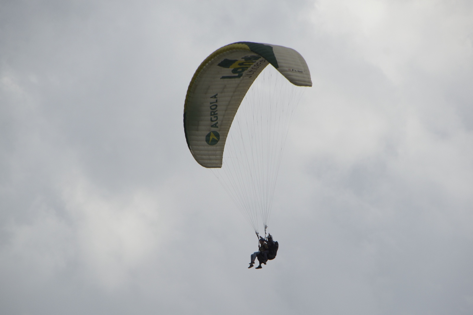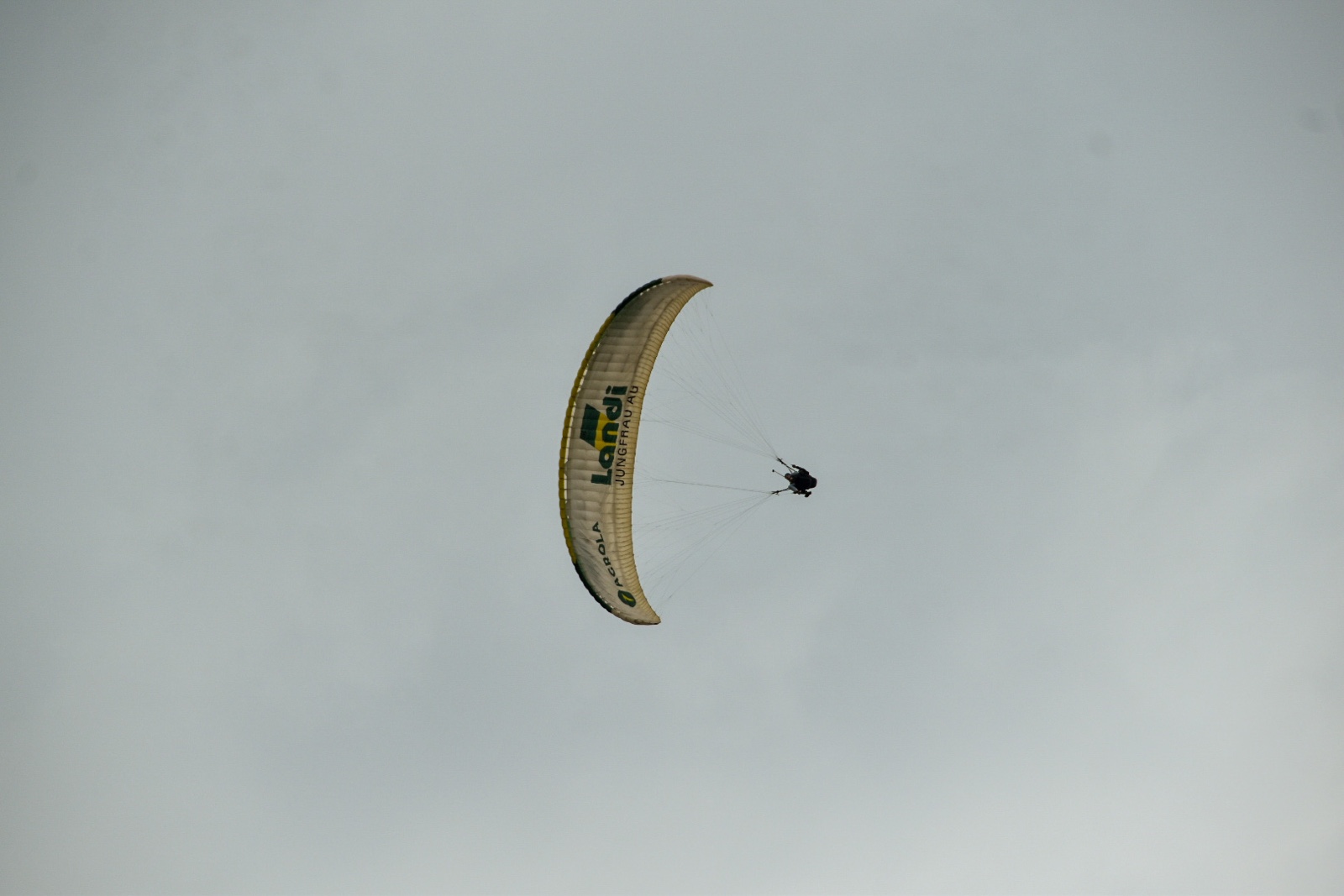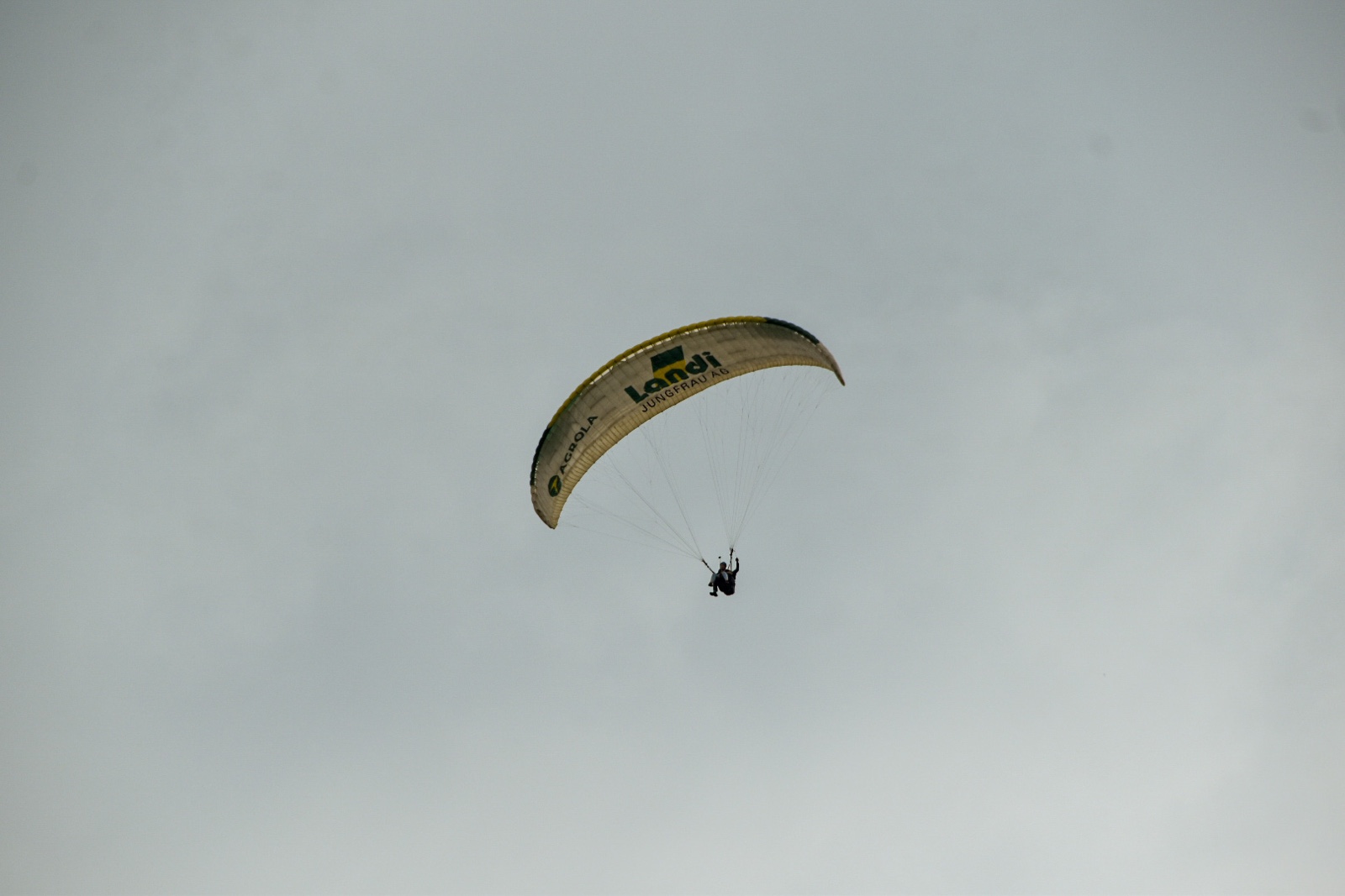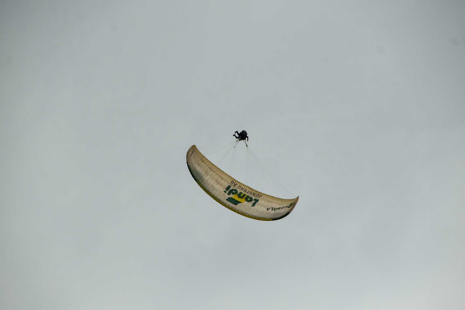 We could identify her chute because it said "Landi" on it. Towards the end, they did a nice spin with her.