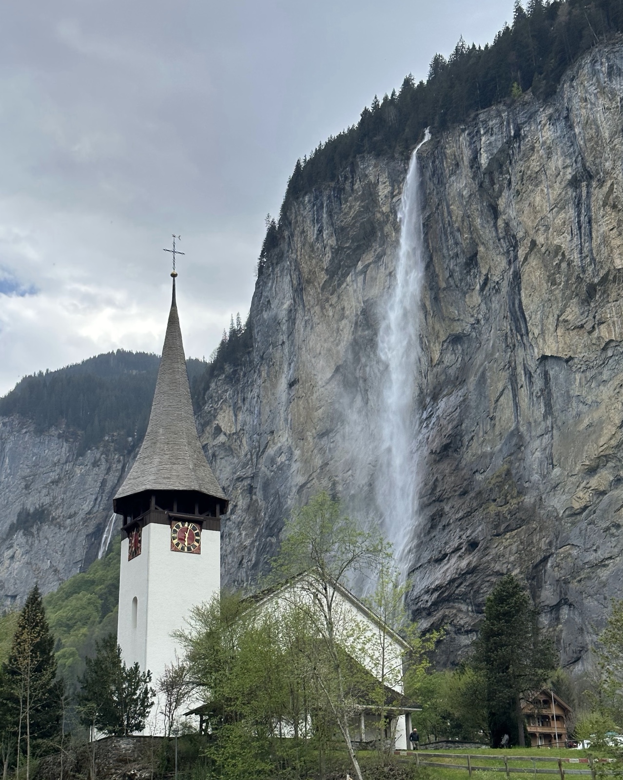 Unfortunately, when we arrived at Staubbach Falls, we realized that it was something that has paid entrance and is closed in the evening, so it was closed by the time we got there.