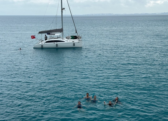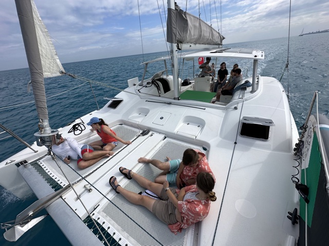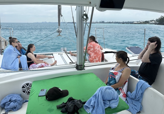 So we got back onboard and the wind dried us off as we cruised along.