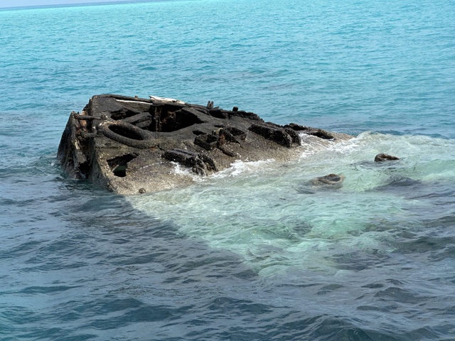 It was an armored gunboat built in 1865 for the Royal Navy. It used to have sails, in addition to a steam engine. After serving as a local defense, rescue boat, and even barracks, it was eventually scuttled to purposely block a channel through the reef so that ships would have to pass nearer to the defensive forts.