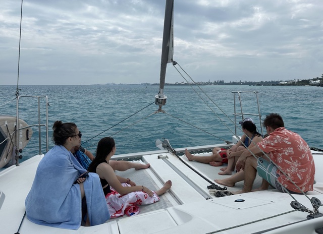 There was also a railing at both tips of the catamaran where you could look over the waves as we cut through the water.