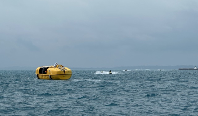 Near the ship, we saw some of the life boats out doing training. Every boat is tested once a year to make sure it is operational.