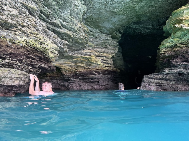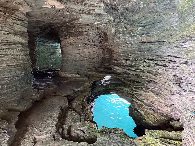 Finally, we arrived at Admiral's Cave, which was carved and blasted into the rock to store gunpowder and such. It also has cliffs that are a good height for cliff jumping.