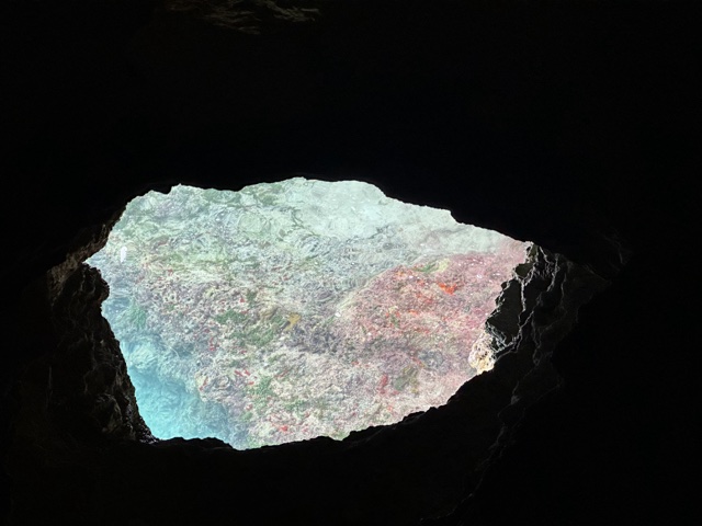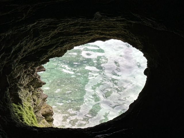 Further into the cave, there is a window that looks out over the ocean.