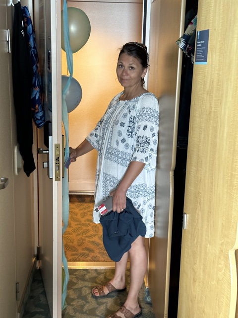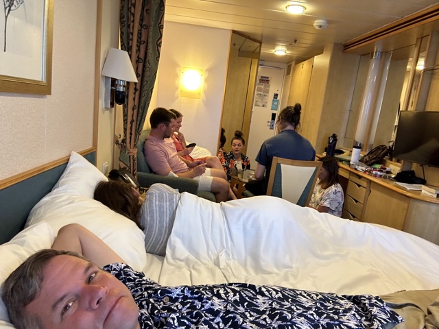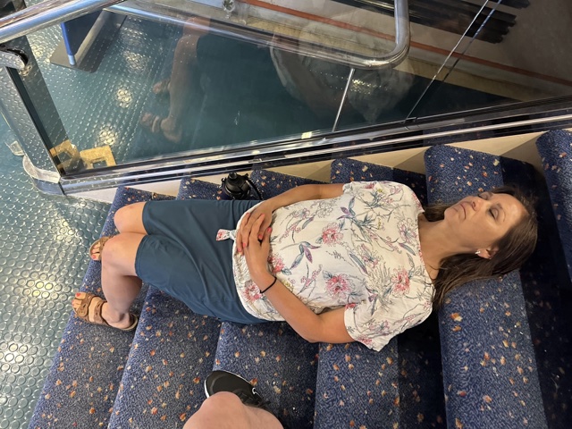We changed into dry clothes and then met down on Deck 1 to disembark again. We had to wait a few minutes for everyone to gather, and Linette was still feeling the effects of the Dramamine.