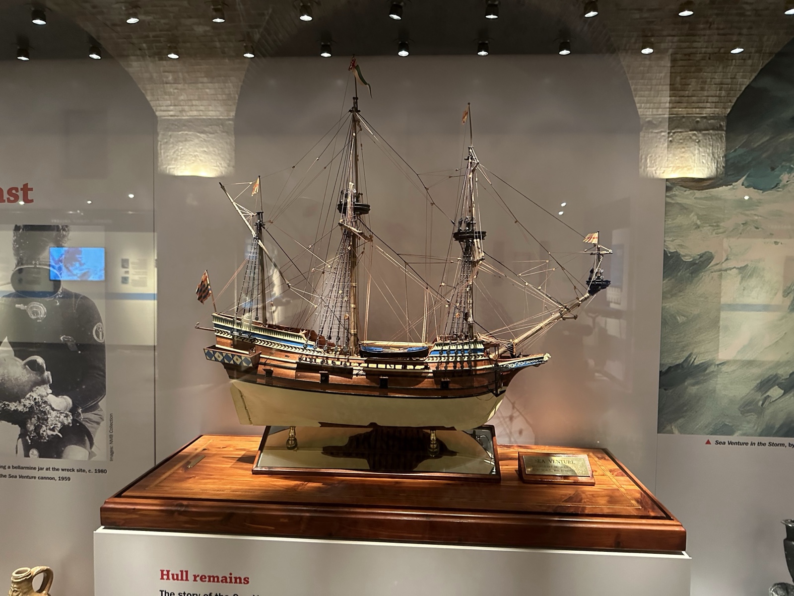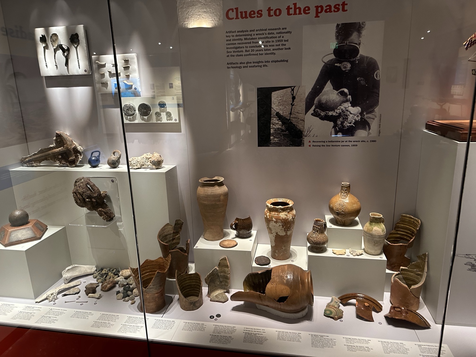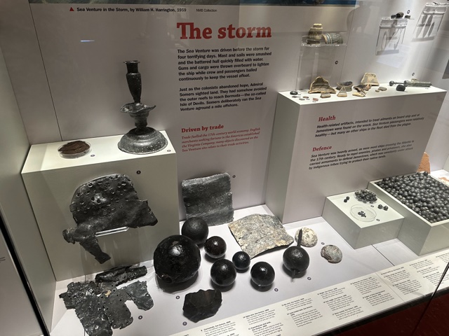This case shows some of the artifacts recovered from the original Sea Venture shipwreck.
