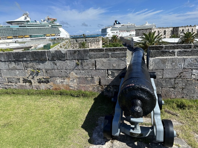 It kind of looked like this cannon was aimed at the Norwegian cruise ship. I bet it would win.