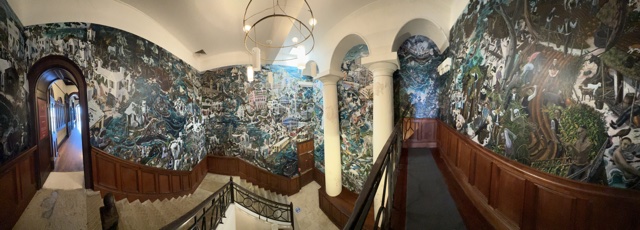 The stairway had a two-story mural covering all four walls.