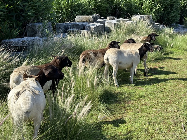 The grass-powered lawnmowers were walking around.