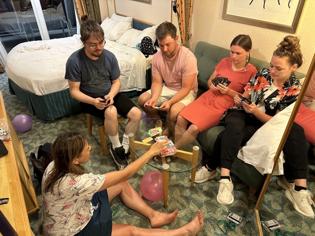 After dinner, everyone came to our room to hang out and play games.