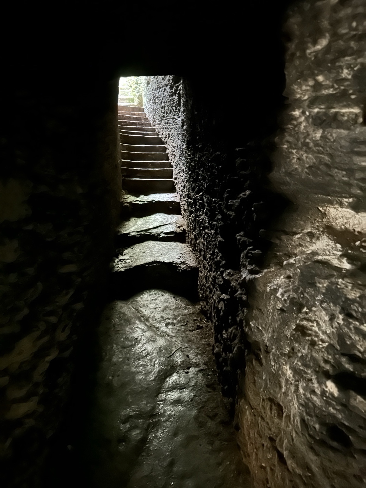 There were stairs carved into the rock that led up to the surface.