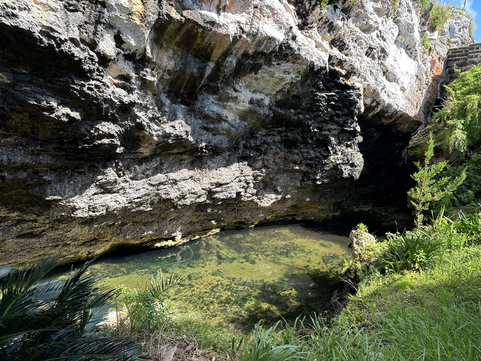 From the water, it wasn't obvious that there was a cave there. (Also, gotta love the blue of the water!)