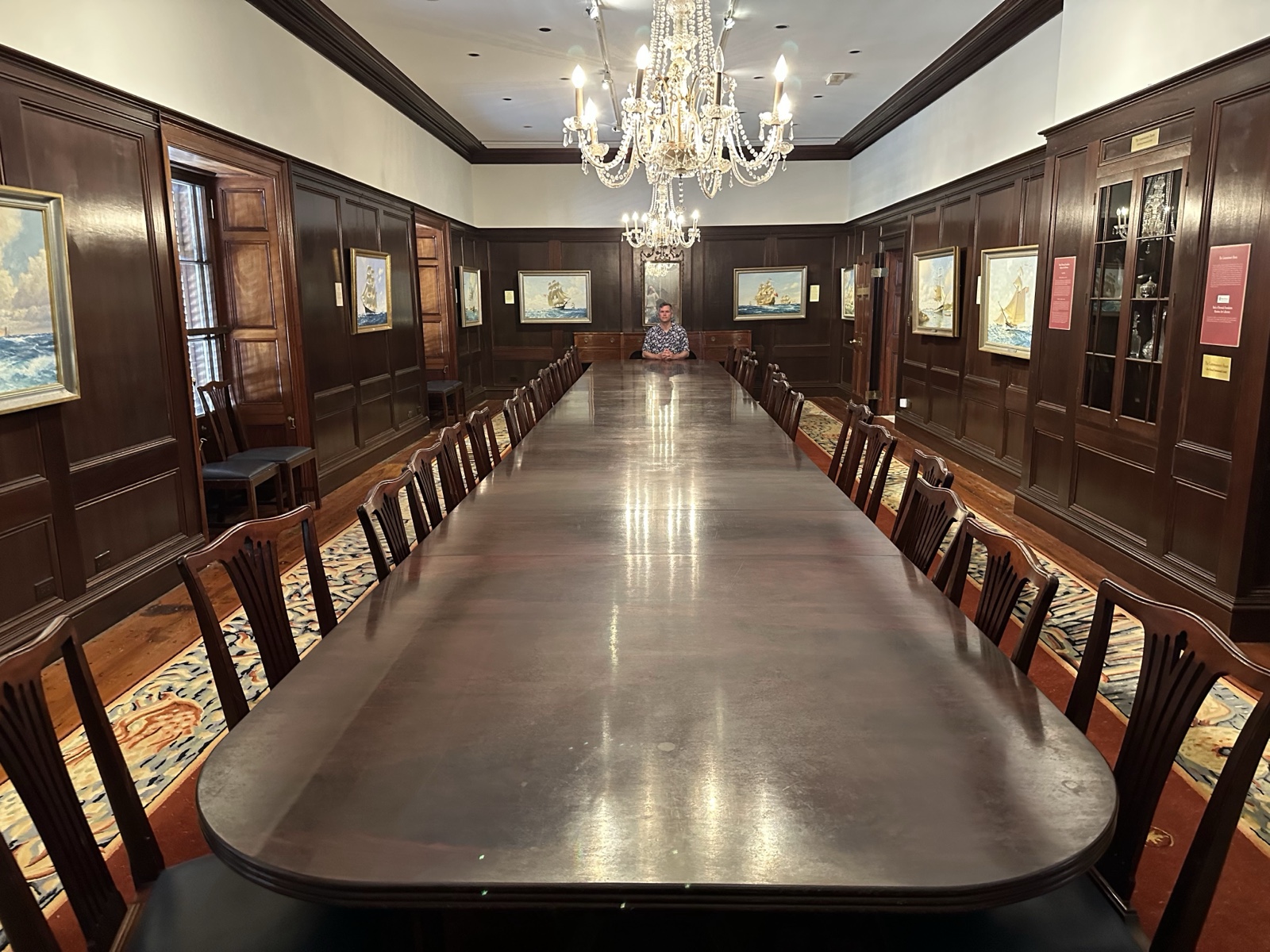 I sat at the big meeting table. ("Excuse me, could you please pass the salt.")