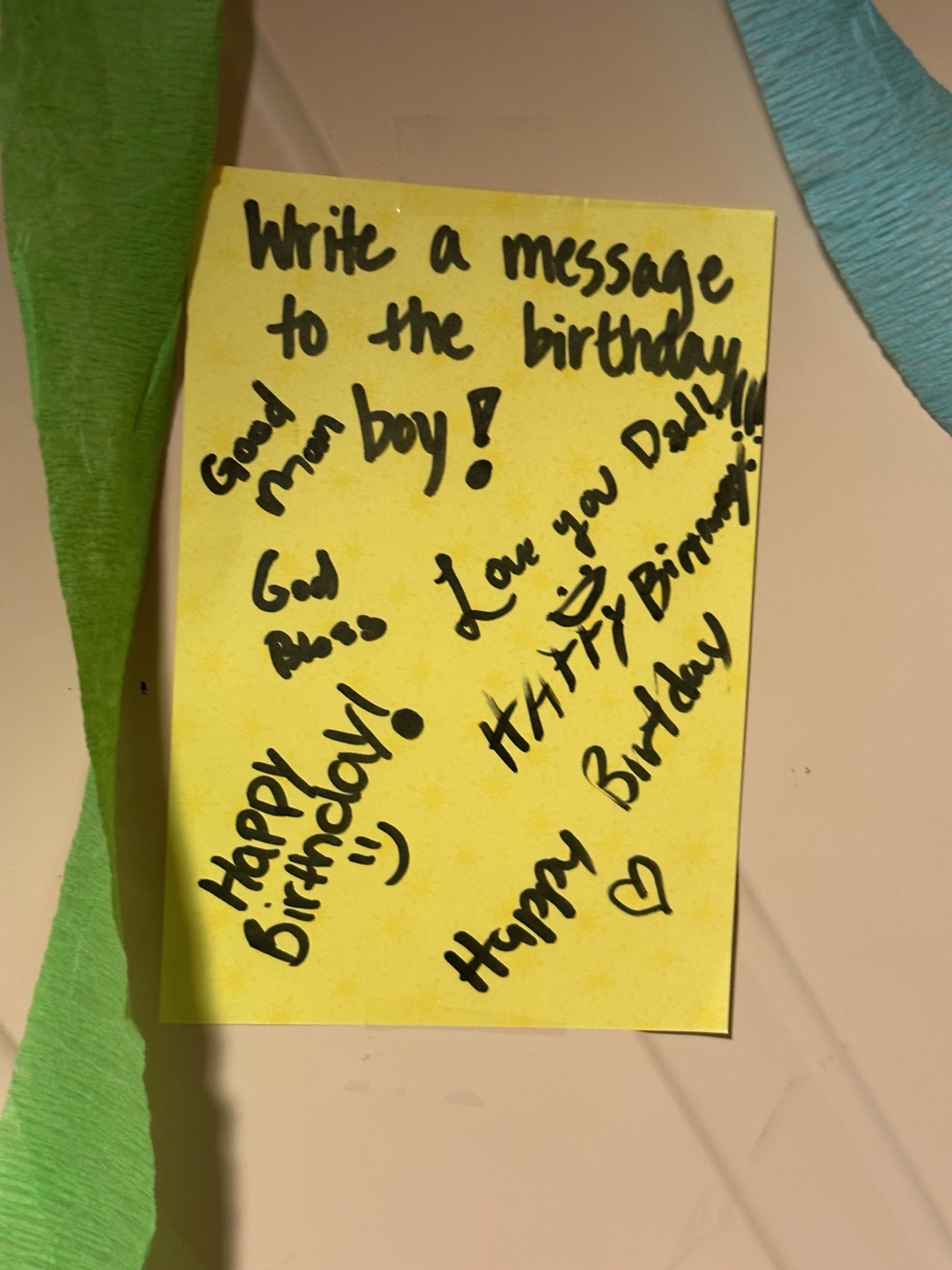 She left a pen there so people could write birthday wishes to me. Our next door neighbors even left me a message later on.