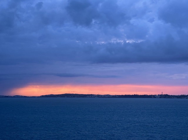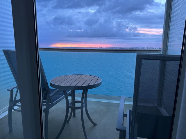 On Tuesday, June 13, 2023, I awoke on our cruise ship in Bermuda around 6 a.m. and saw from our balcony that there was a pleasantly pink sunrise going on.