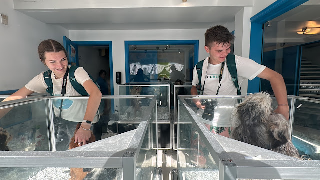 Apparently the pet store doesn't usually let you in there, but the kids talked their way in and were allowed to play with the puppies for a few minutes. They were in heaven, and the puppies seemed to really appreciate it.
