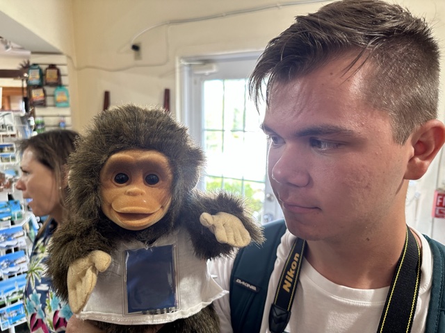 Jared made a new friend at the gift shop.