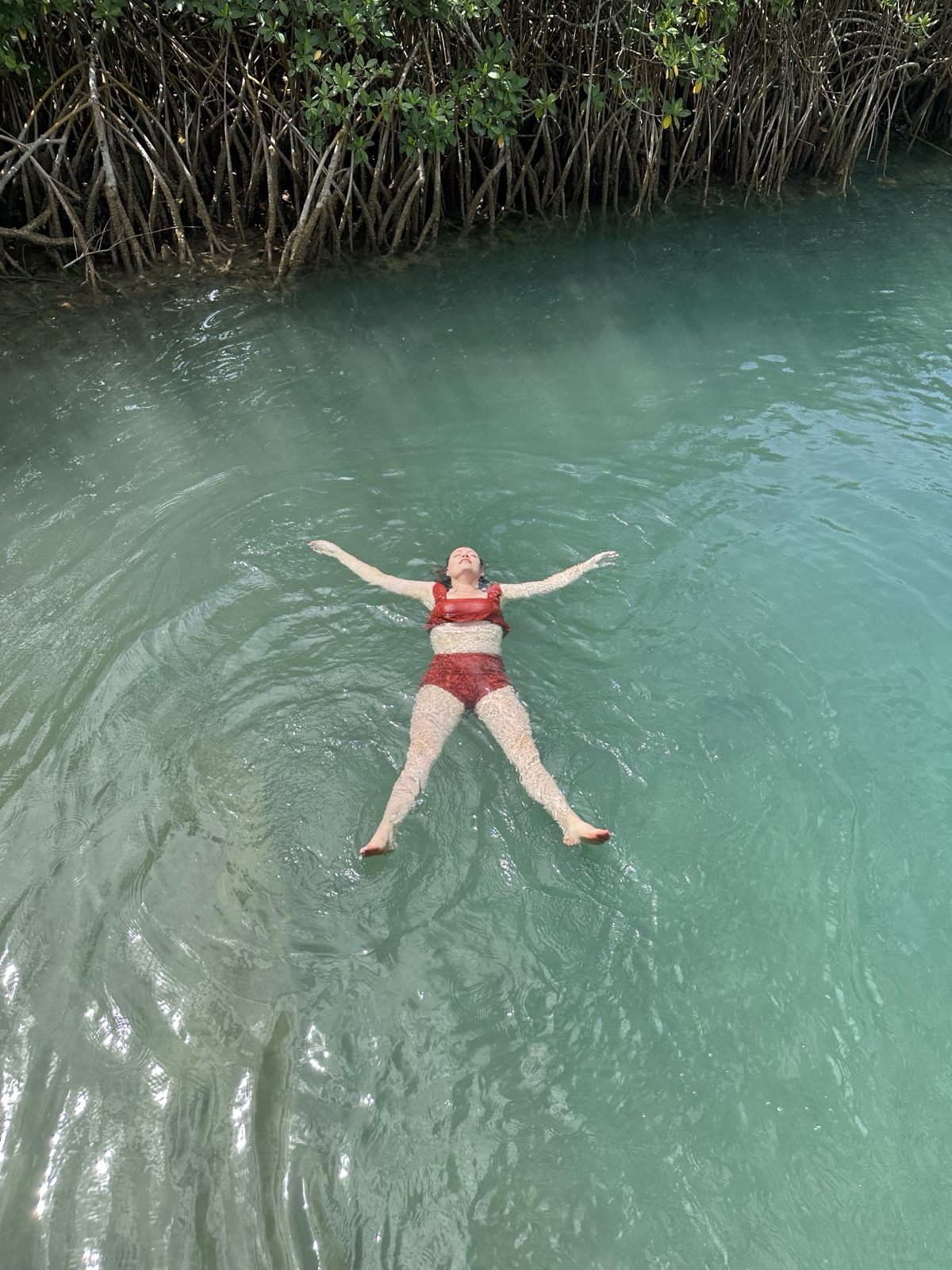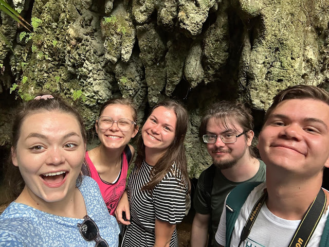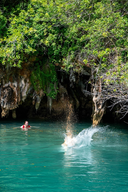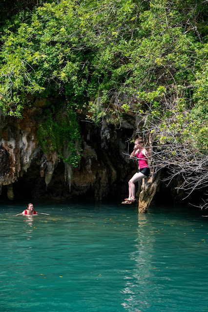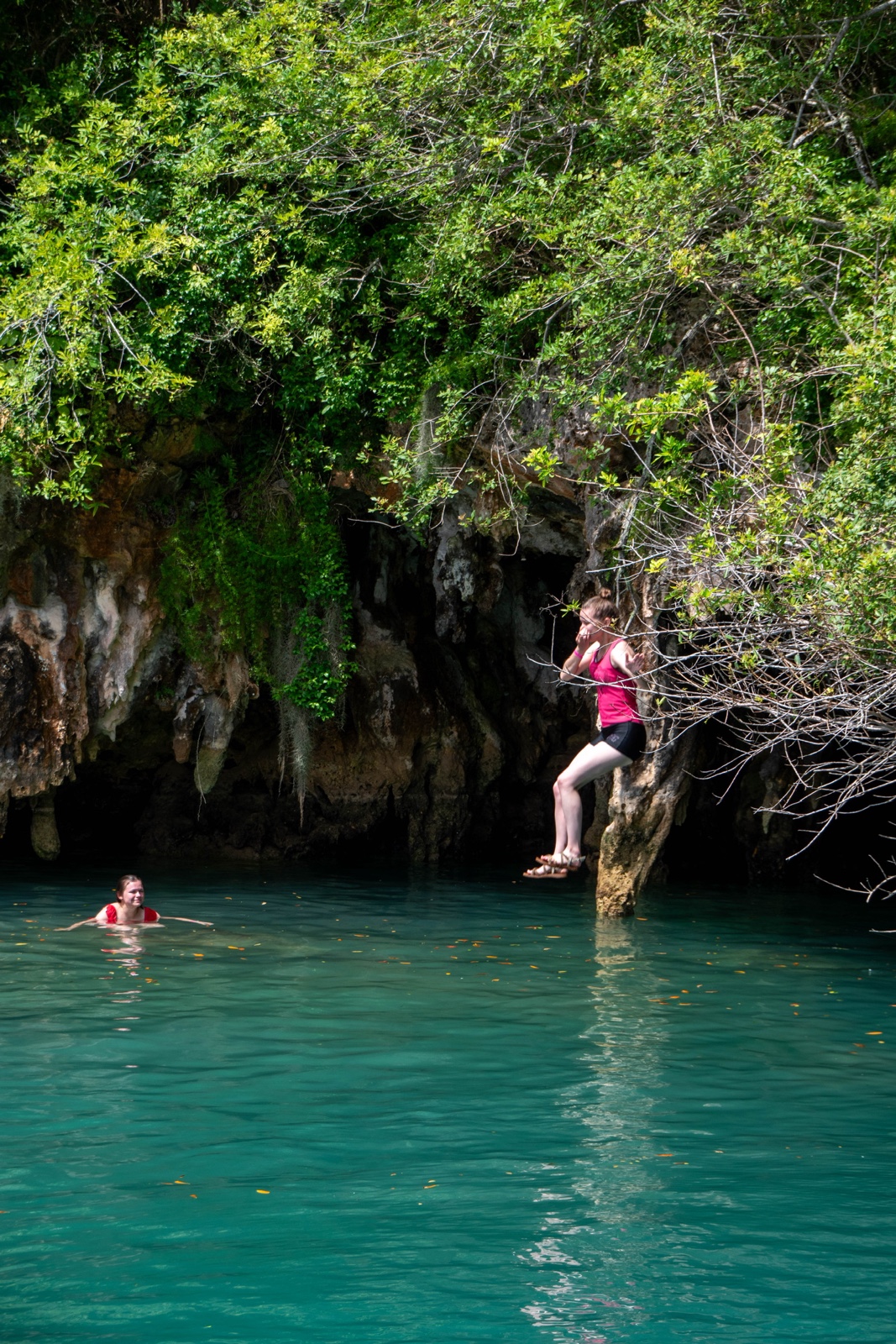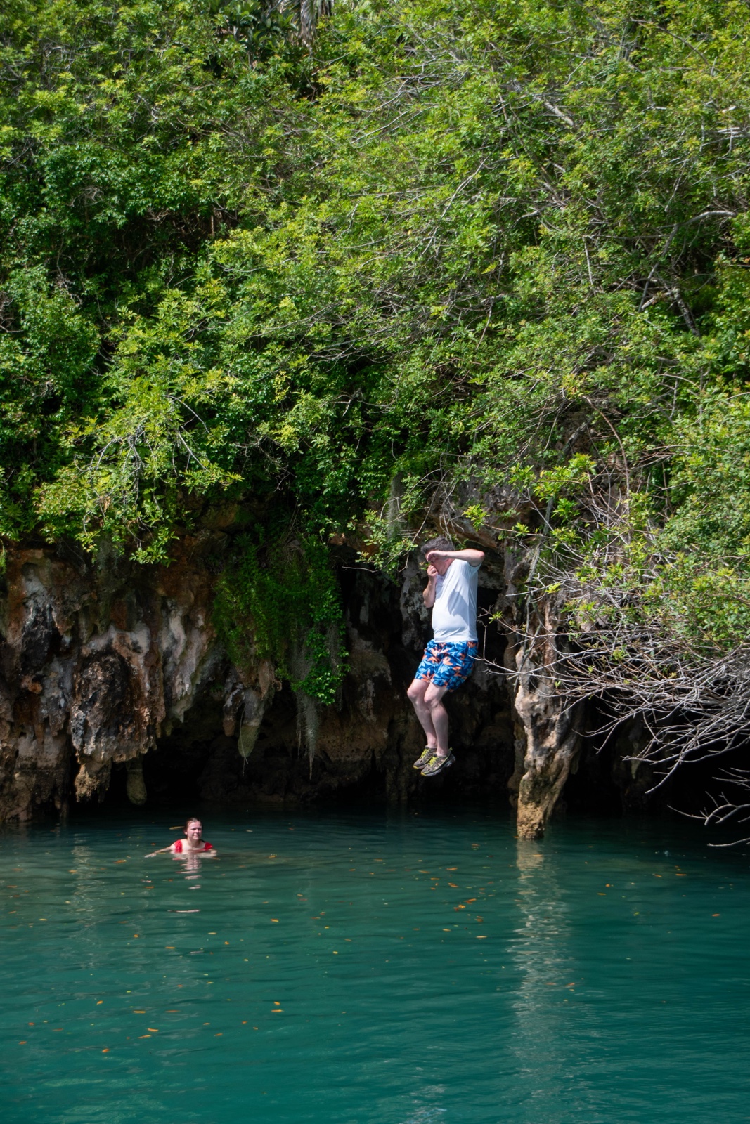 Finally we reached the Blue Hole, a water hole in the middle of limestone. There were a couple muddy paths that went to jump-off ledges at different heights.