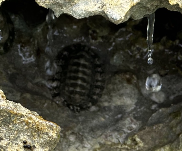 The first time I saw one of these, I thought it was a little bronze symbol anchored onto some stone. I eventually realized that these are mollusks (called Chitons). They have 7 interlocking shells and can hold on very tightly to rocks.