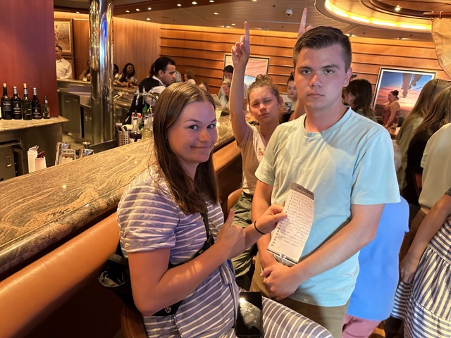 After dinner, we went to a Disney movie trivia game, where they played a clip from a song and you had to guess what movie it came from. We had Kelsi and the kids, so we got 17/17, including the obscure one from Brother Bear.