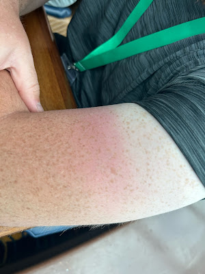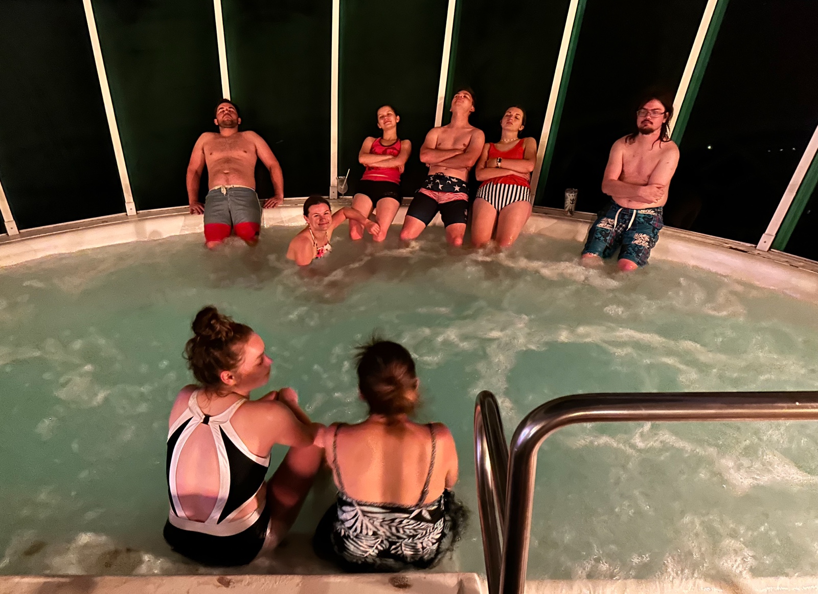 We hit the hot tub that night, or as I was calling it, "the sunburn detector." The water was really hot, though, so we mostly sat outside of it.