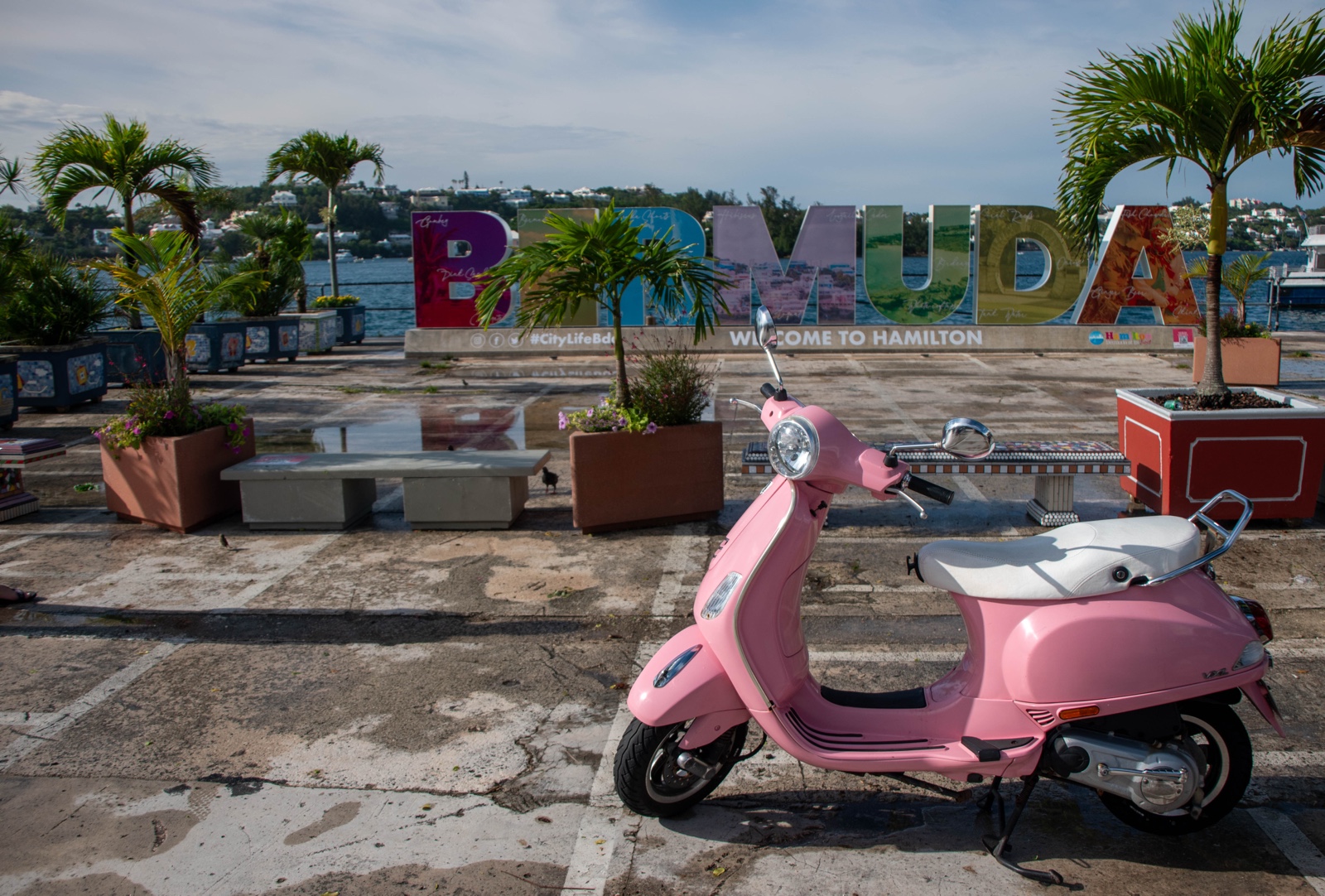 Jared also enjoyed this pink Vespa in front of the sign.