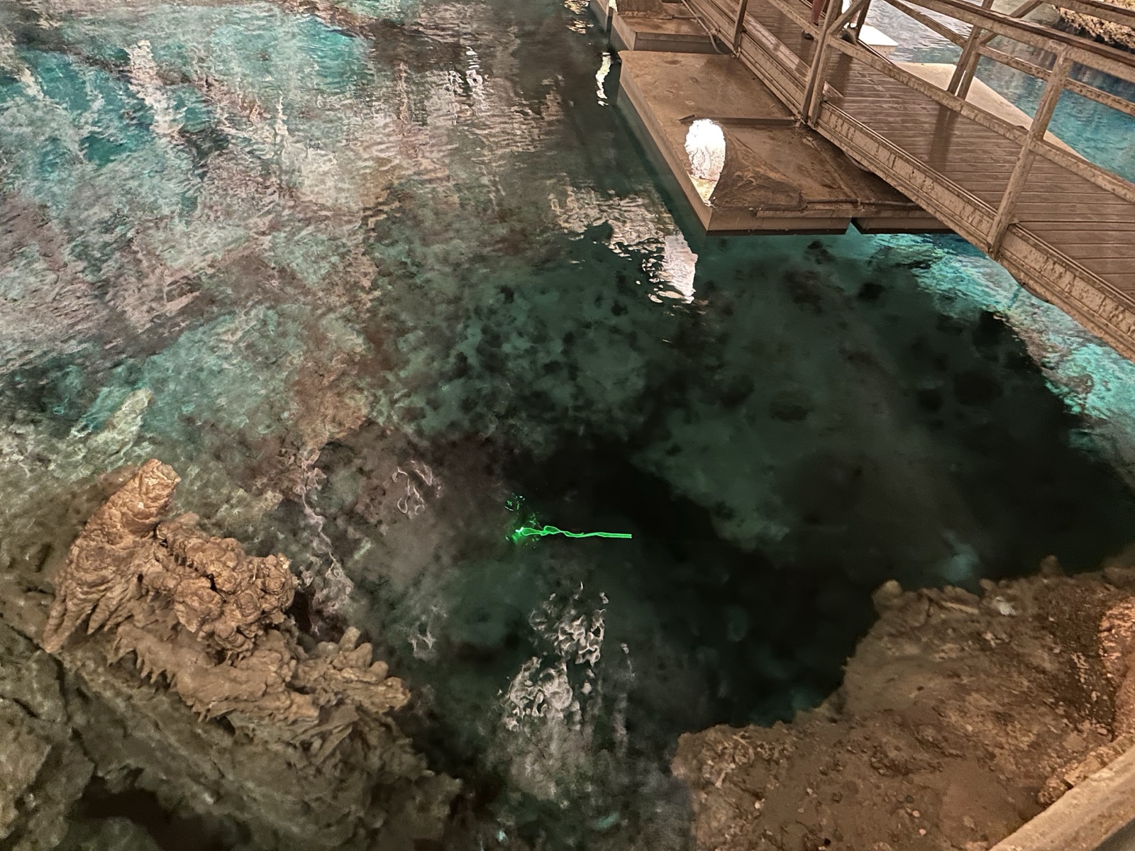 He also said that they send a scuba diver down once a year to clean up anything that gets dropped in there. He said that there were currently about 20 cell phones down there, so to be careful!