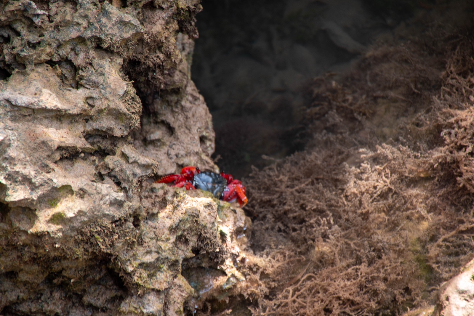 There was a big, bright red crab hiding in one of the rocks, and it was creepy to see it walk around.