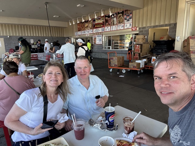 Once on the Big Island, we stopped by Costco for lunch and to pick up some groceries for the last few days of our trip. We got some ribeye steaks, and I was worried about keeping them cold, so I took 3 ziplock bags out of Linette's backpack, filled them with ice, and commandeered a box from that cart over there, thus fashioning a rudimentary refrigerator out of ordinary materials.