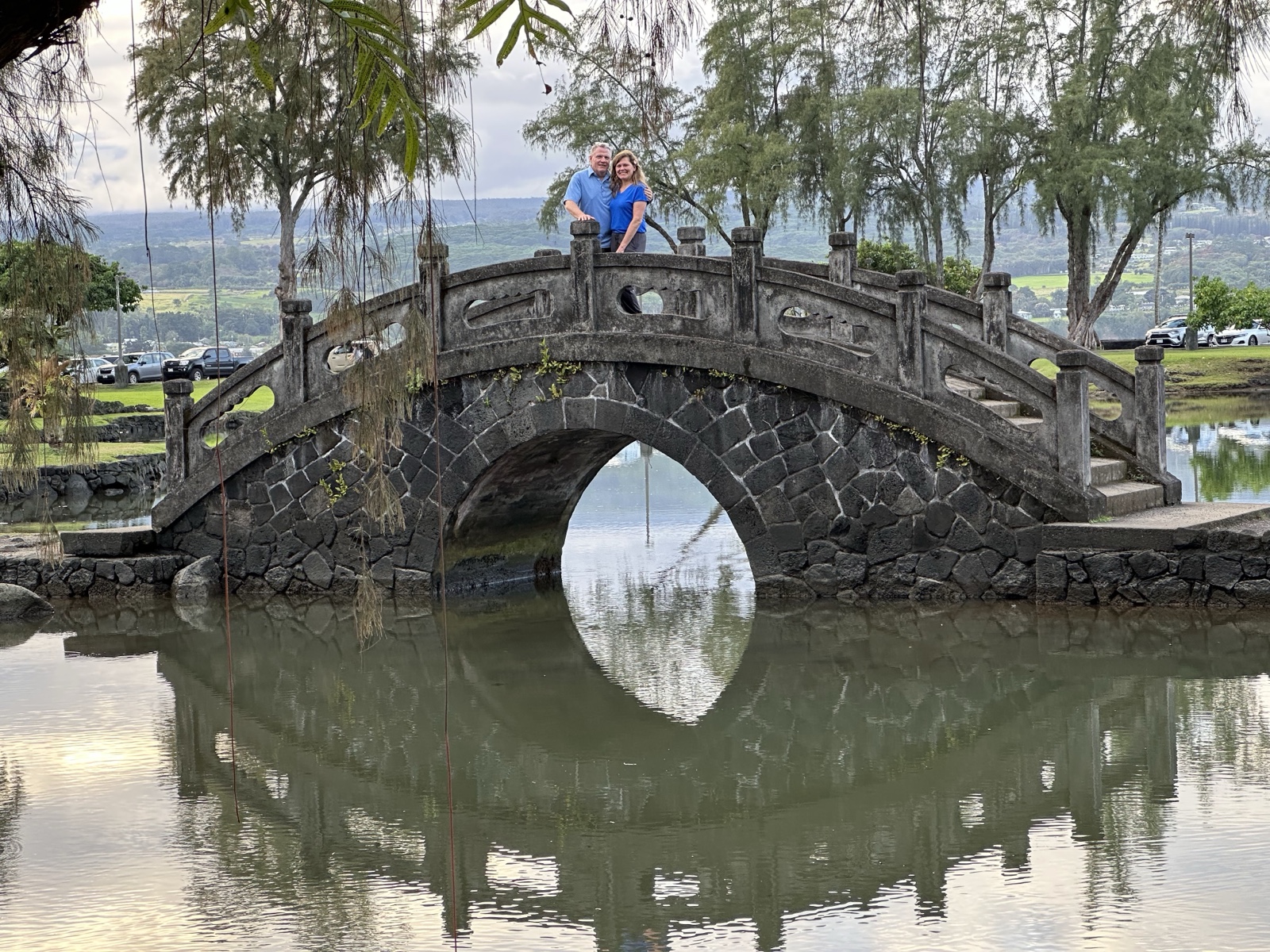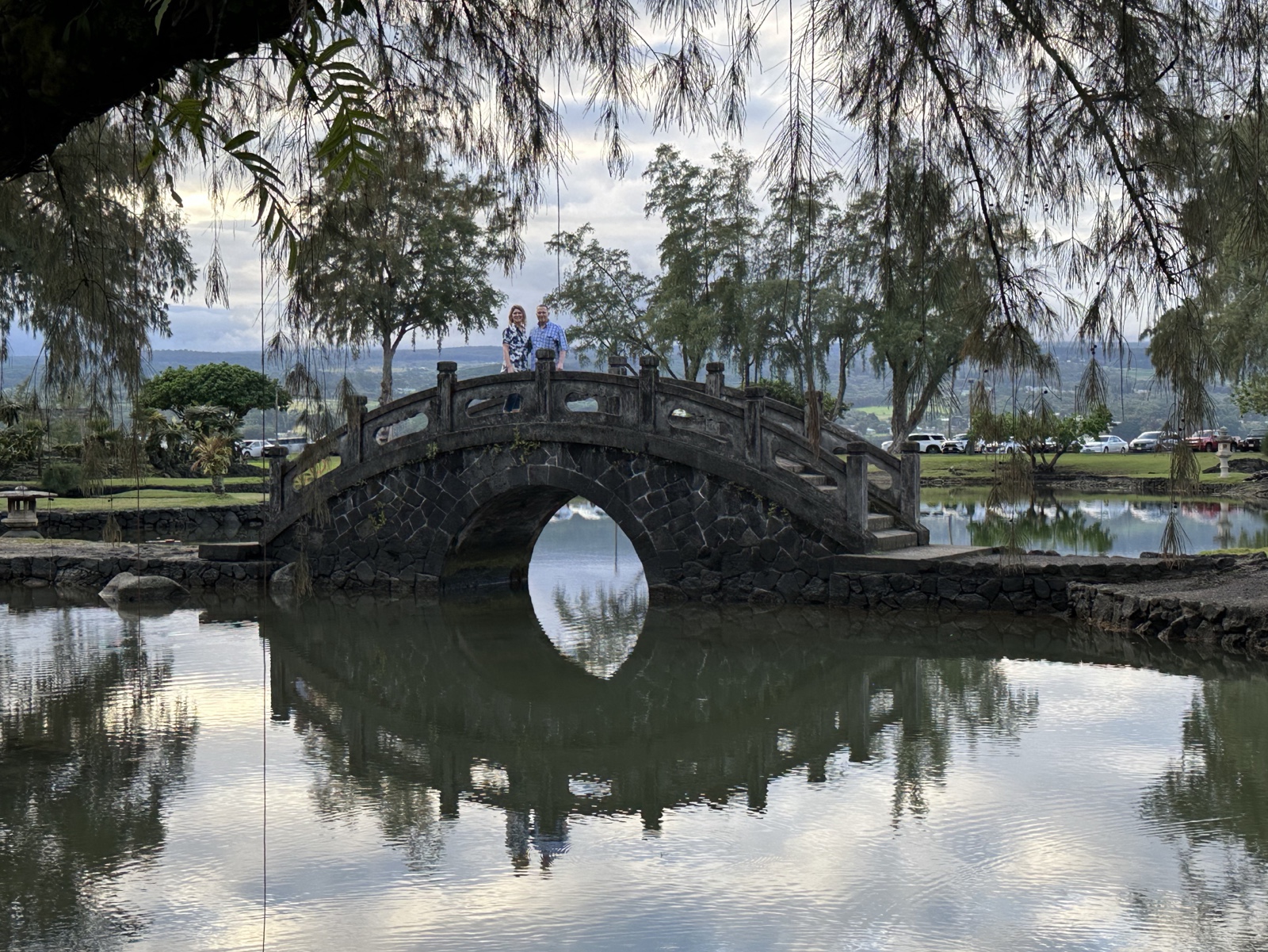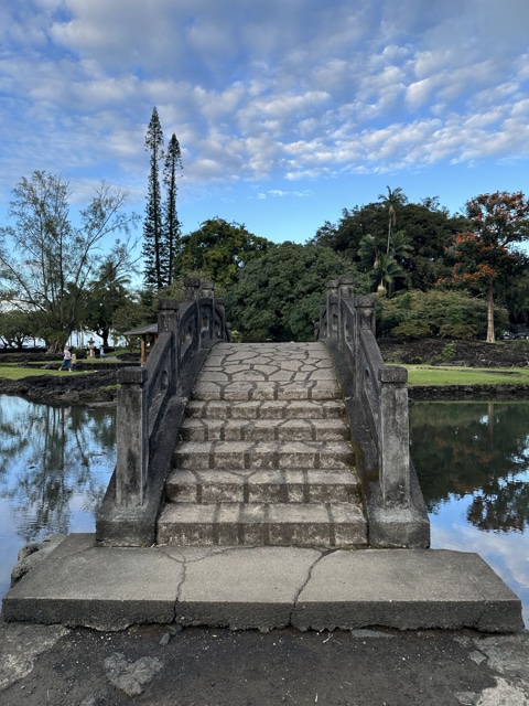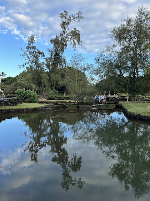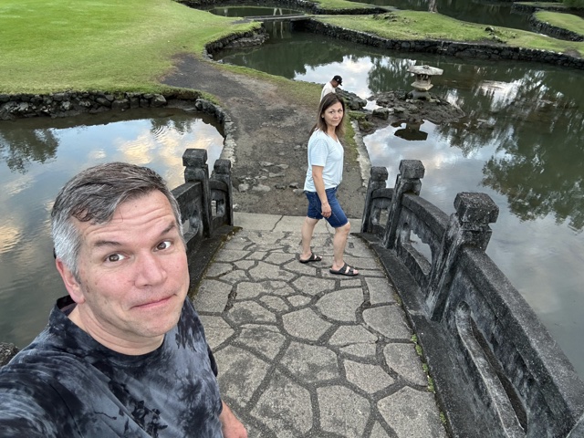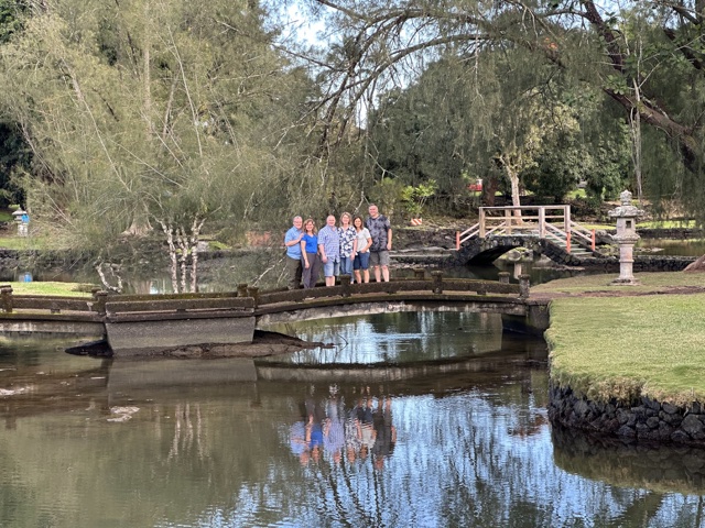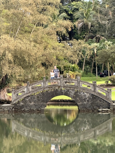 The shaved ice gal was very friendly, and when Sandra & Dave asked her for suggestions of what to do, she recommended that we visit the Liliʻuokalani Gardens, so we did! These are free Japanese gardens with ponds and bridges.