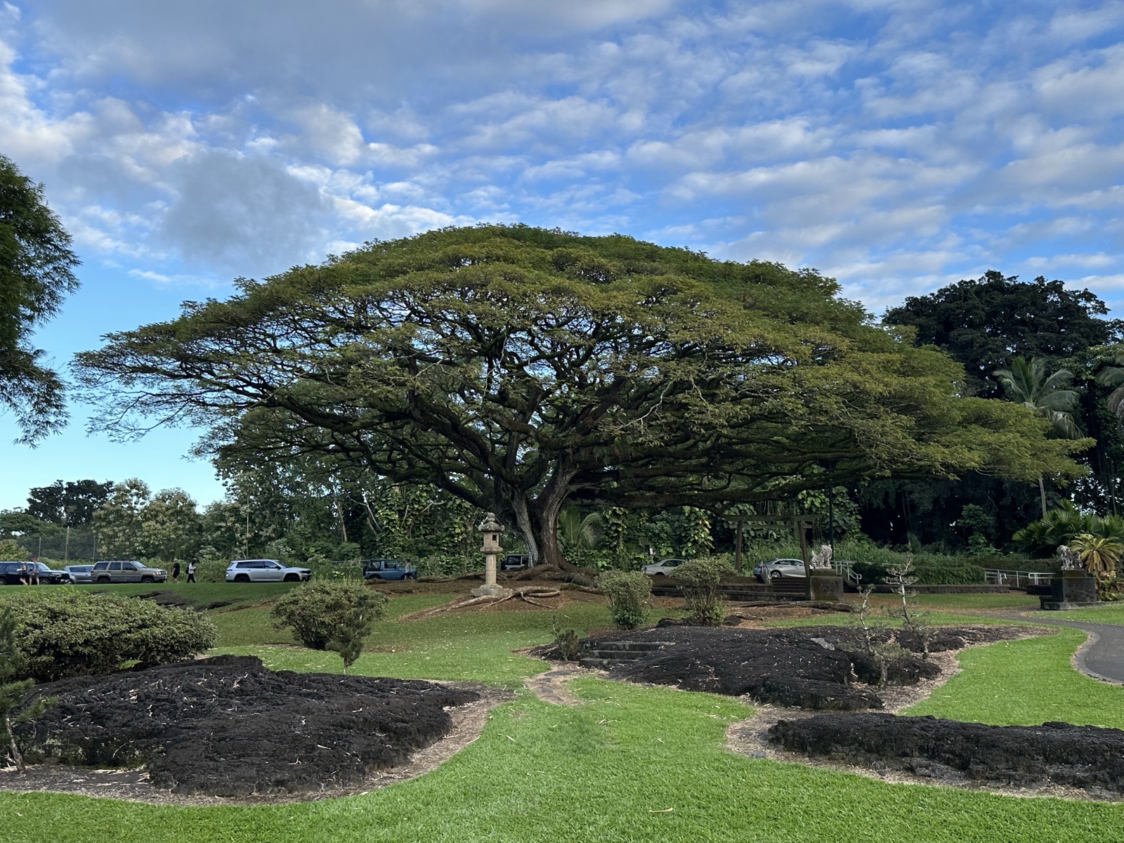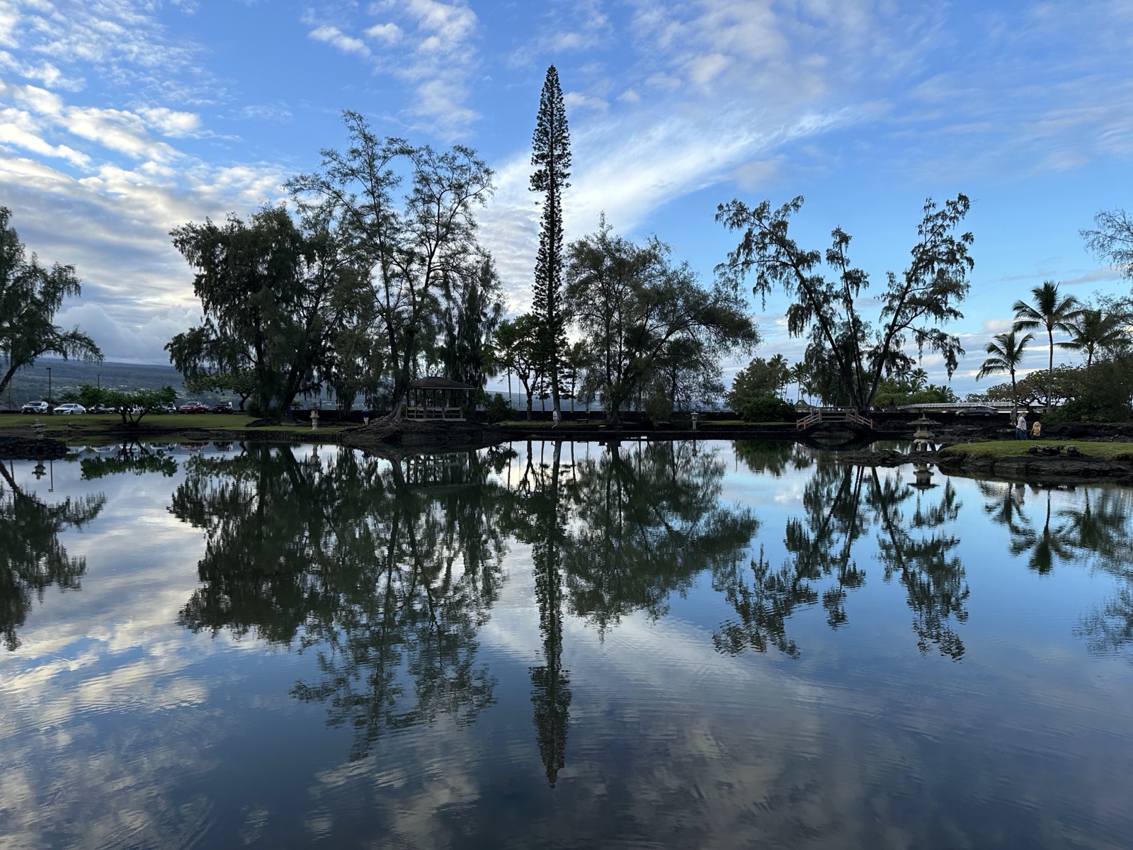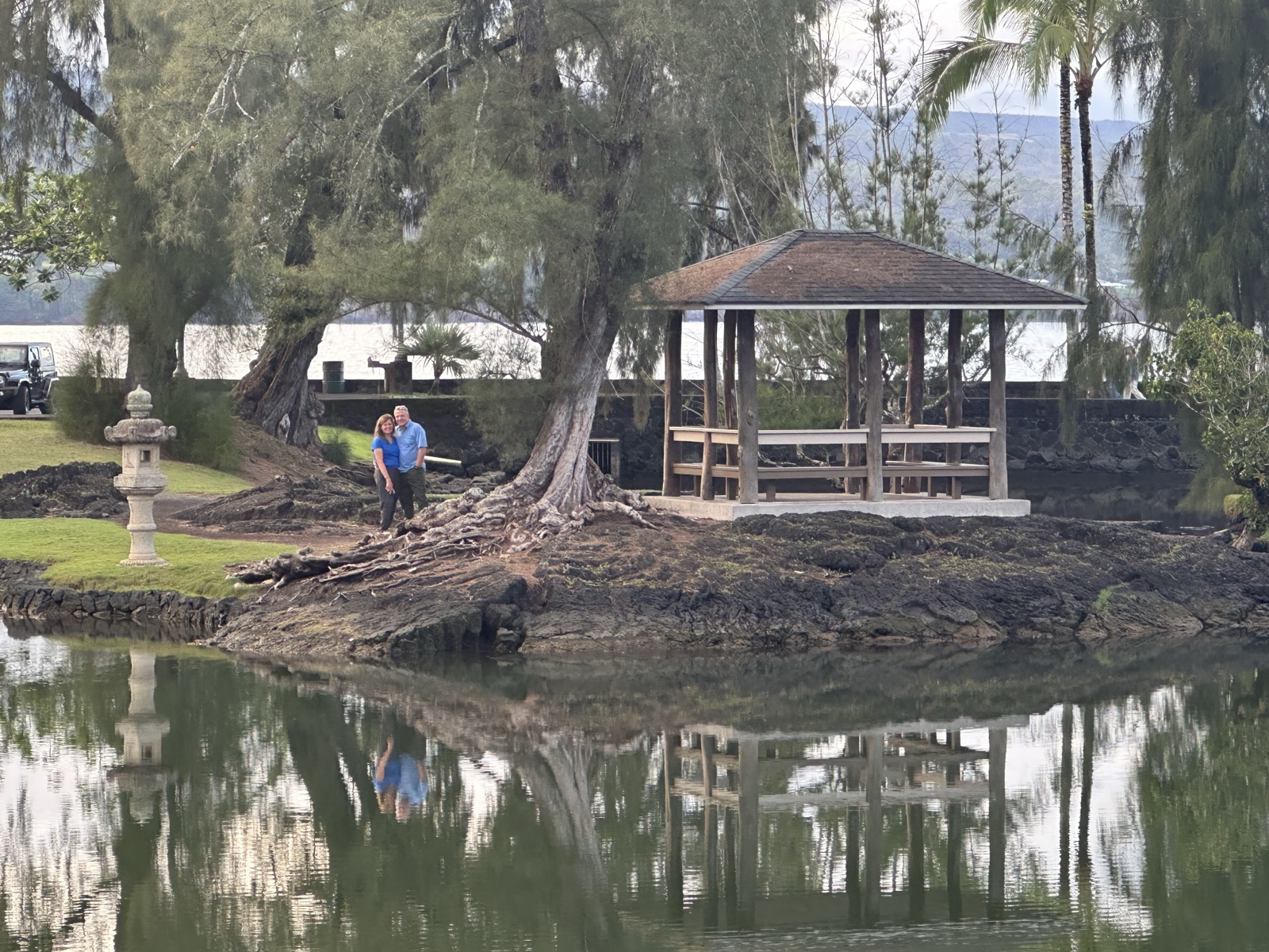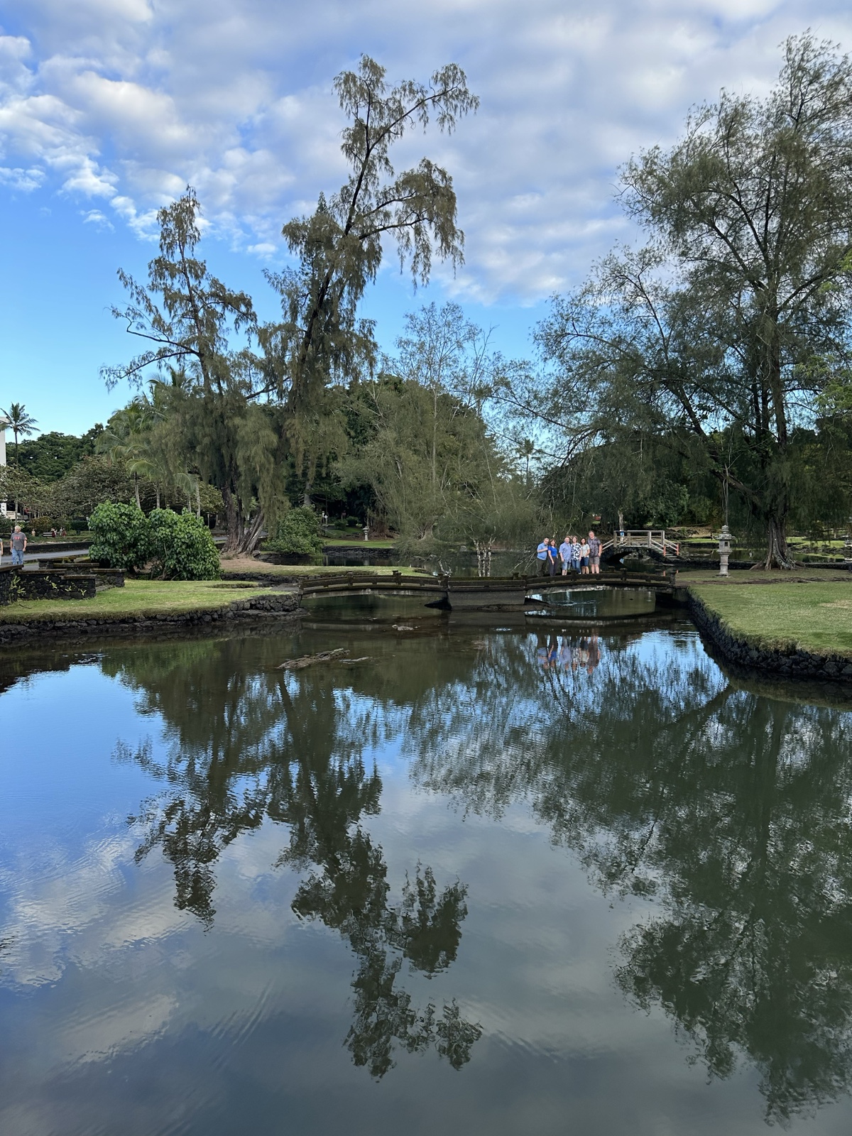 The shaved ice gal was very friendly, and when Sandra & Dave asked her for suggestions of what to do, she recommended that we visit the Liliʻuokalani Gardens, so we did! These are free Japanese gardens with ponds and bridges.