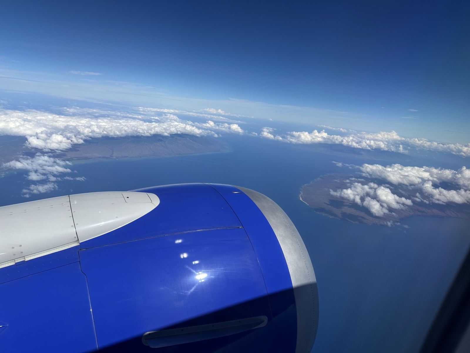 I was surprised at how close together some of the other islands were as we flew over them. I believe we're seeing Moloka'i (left) and Lanai (right) here.