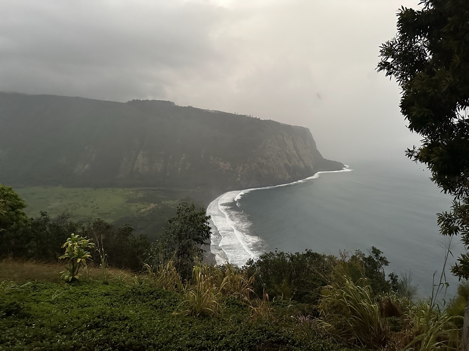 We took a detour to see the Pololū Valley Lookout. It's a pretty great view, though it was starting to rain and get dark by the time we got there.