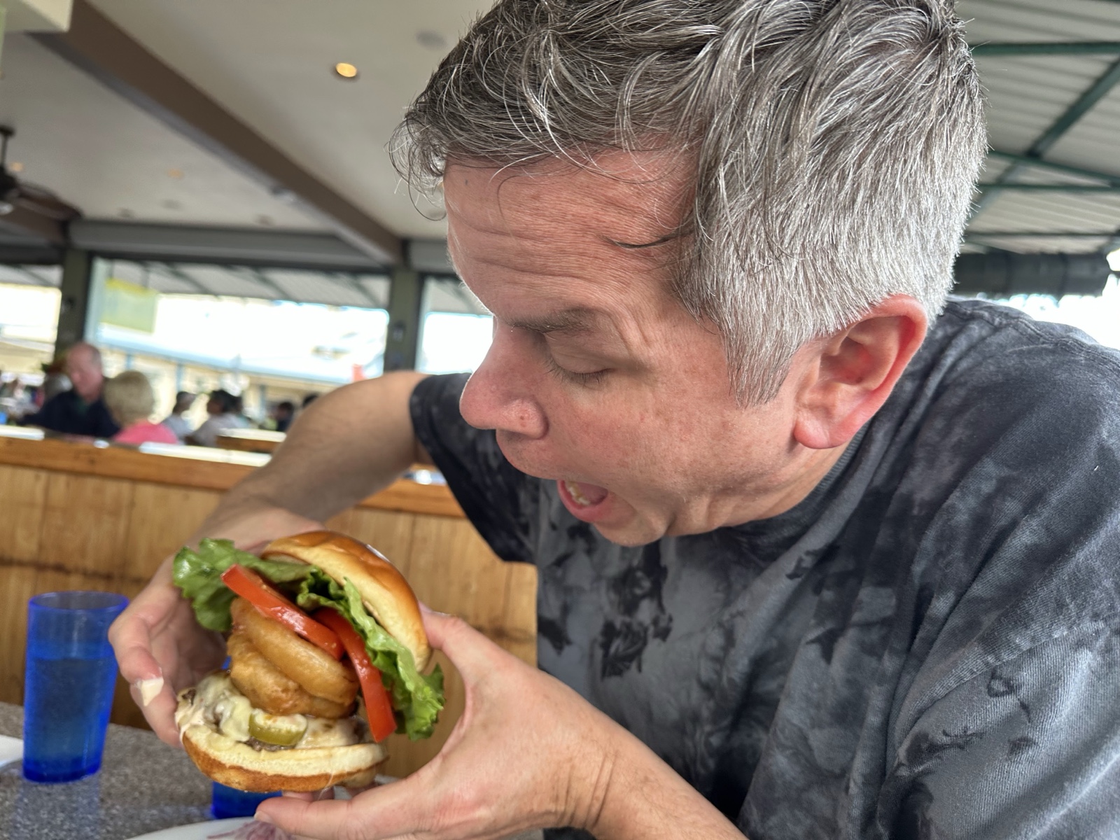 My burger had two onion rings on it, and I wasn't sure how to approach it.