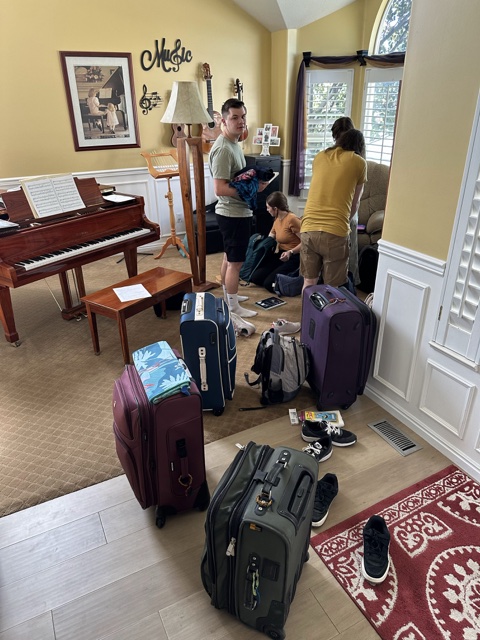 The excitement was palpable as we finished cramming things into our bags. We all took either a medium bag or a carryon, since we knew space would be tight in our rental cars. (Over in North Carolina, Eva took a couple full sized bags, as is a baby's prerogative).